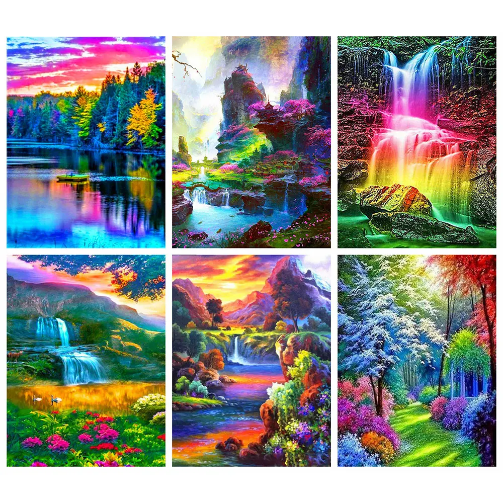 Алмазная 5D живопись сделай сам, наборы для вышивки крестиком, полная вышивка с квадратными стразами, Водопад, Радужный пейзаж, мозаика, украшение для дома icon star icon star icon star icon star icon star