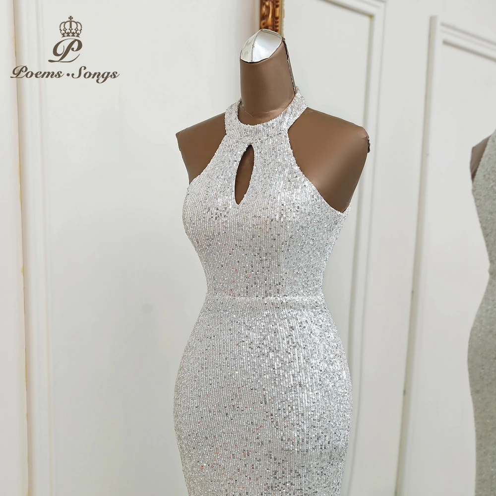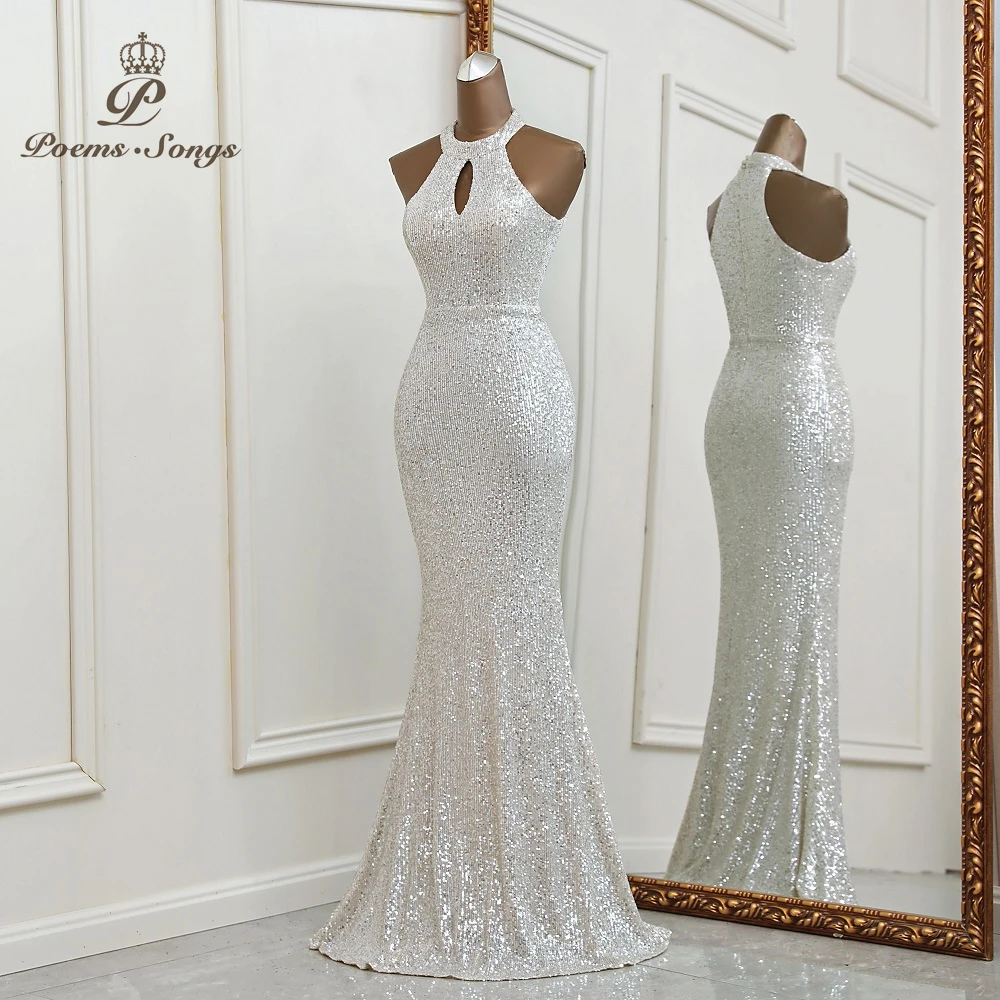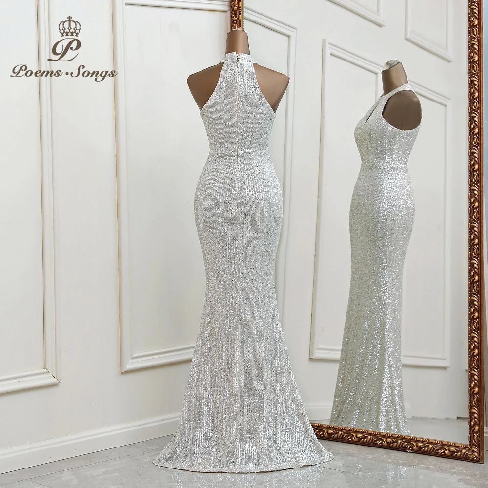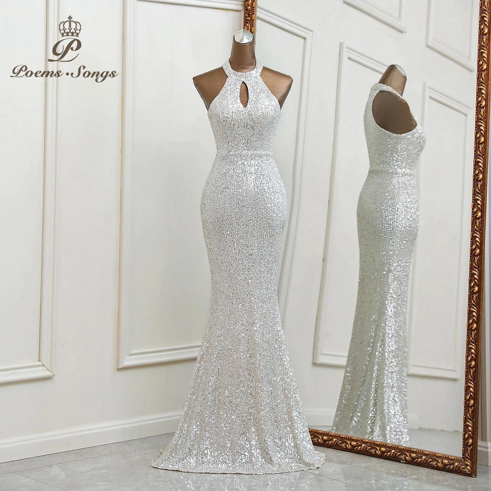 Женское вечернее платье-русалка, серебристое платье для вечеринки, официальное элегантное платье