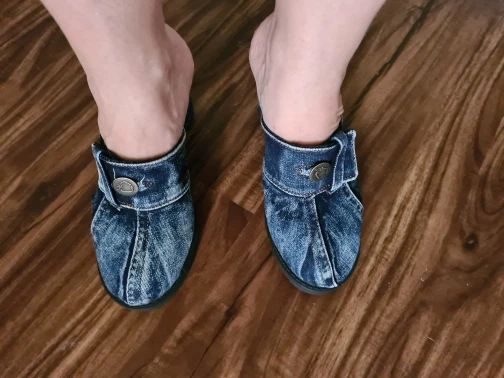 Сандалии женские из денима на танкетке, повседневные шлепанцы на то...
