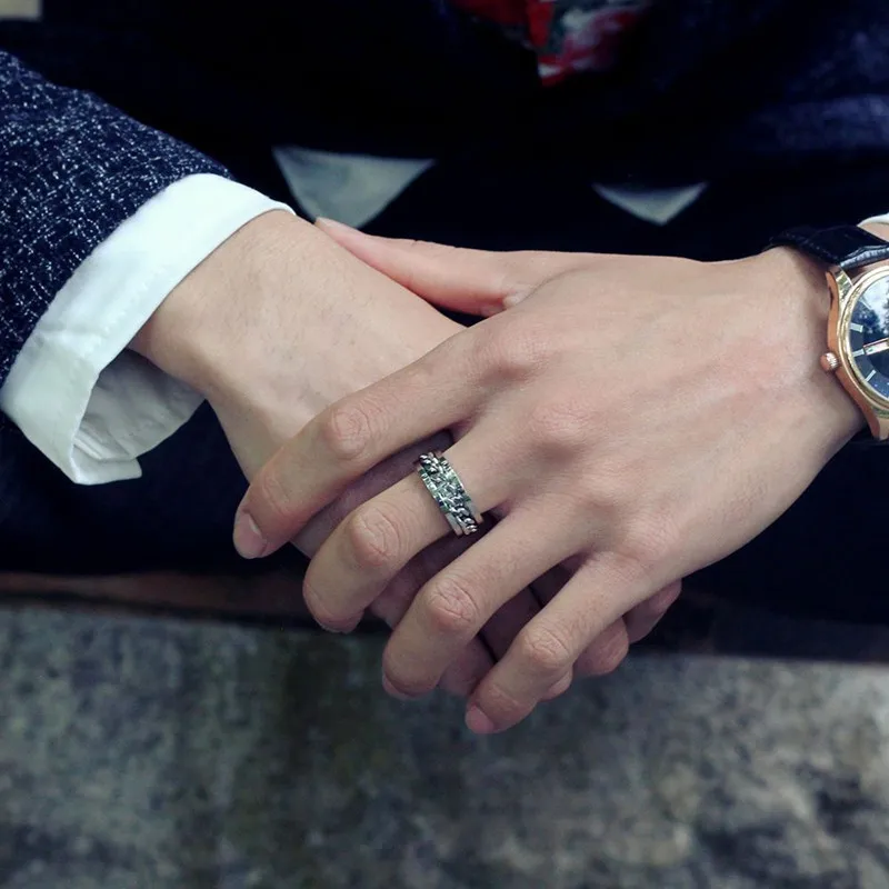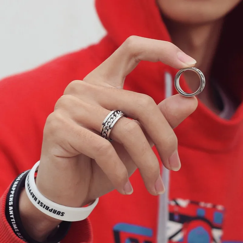 Титан Сталь вращающаяся цепь кольца для мужчин и женщин кольцо Обте...