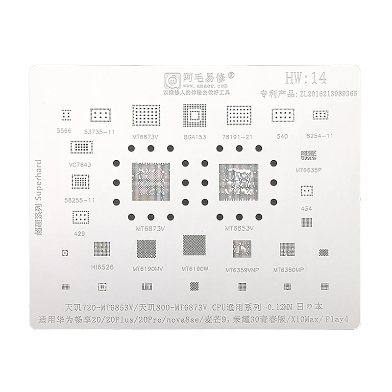 Трафарет для реболлинга Amaoe HW14 BGA для Huawei Enjoy 20 Plus Pro Nova8se X10Max, Honor 30Lite Play 4 MT6853V MT6873V, чип CPU RAM IC