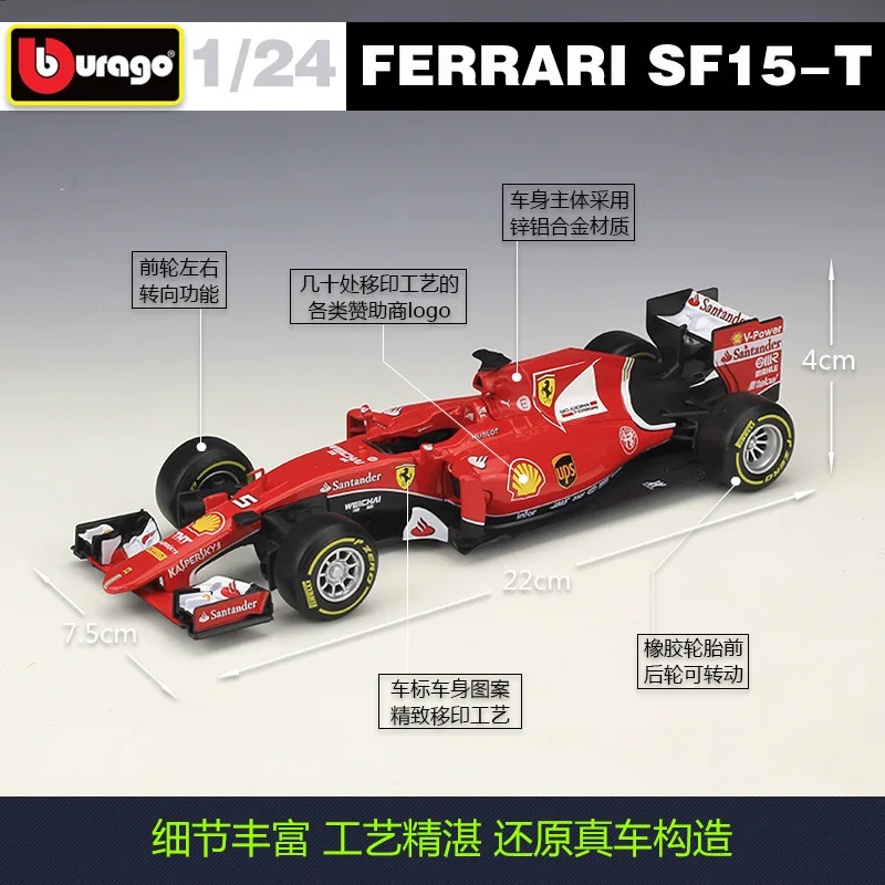 Модель автомобиля Bburago 1:24 F1 2015 Ferrari SF15-T Formula One Racing из сплава