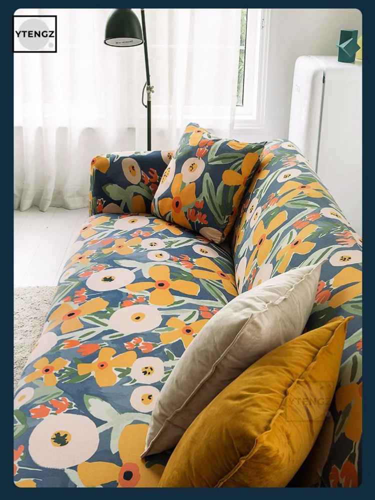 Эластичные чехлы для диванов в скандинавском стиле, универсальные L-образные чехлы для диванов с принтом в гостиную