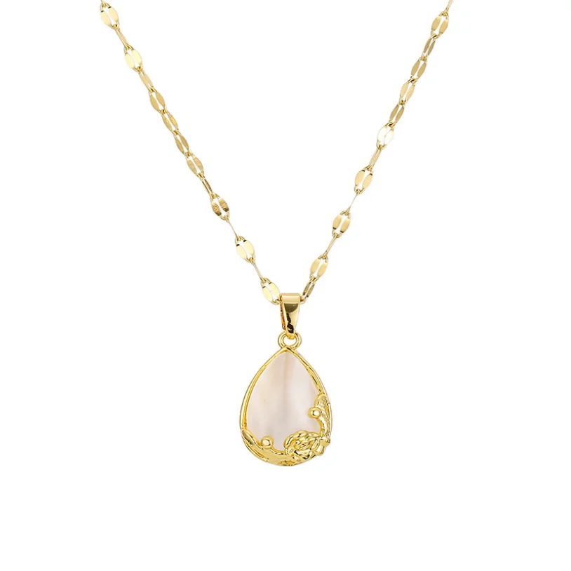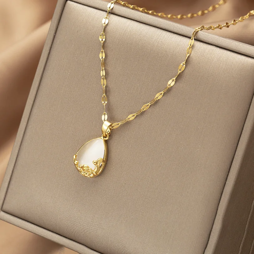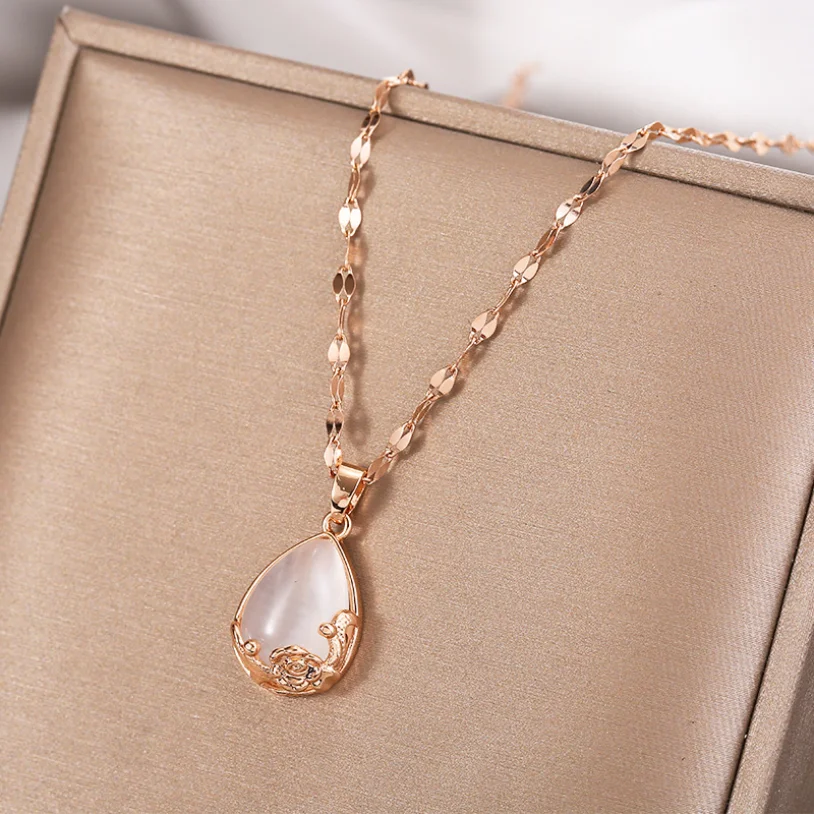 316L из нержавеющей стали новые модные высококлассные изделия опал роза цветок в форме капель Подвески цепочка колье и подвески для женщин