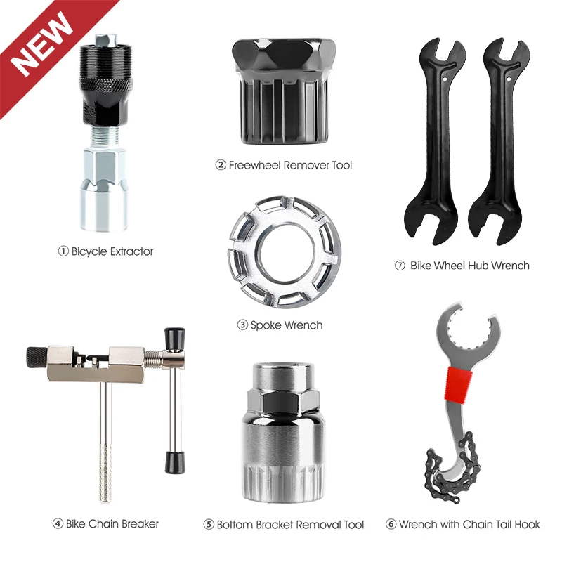 Гаечный ключ свободного колеса, используемый для удаления и установки маховика и оси; Велосипедный цепной Выключатель двойной приводной штифт для легкого прерывания цепи, специально разработанный для удаления и установки цепочка булавки; кривошип Съемник Расширенный эжектор для удаления цепных колец и кривошипа; Инструмент для удаления серебряного нижнего кронштейна с 20 зубьями, используется для демонтажа велосипедного нижнего кронштейна.