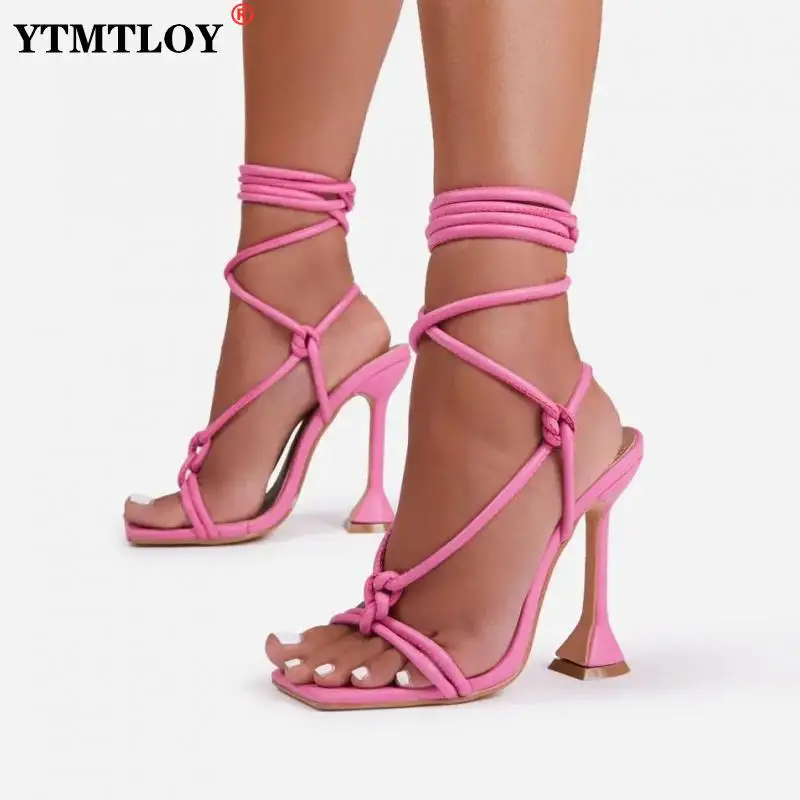 Сандалии женские на шнуровке, Босоножки с открытым носком, пикантны...