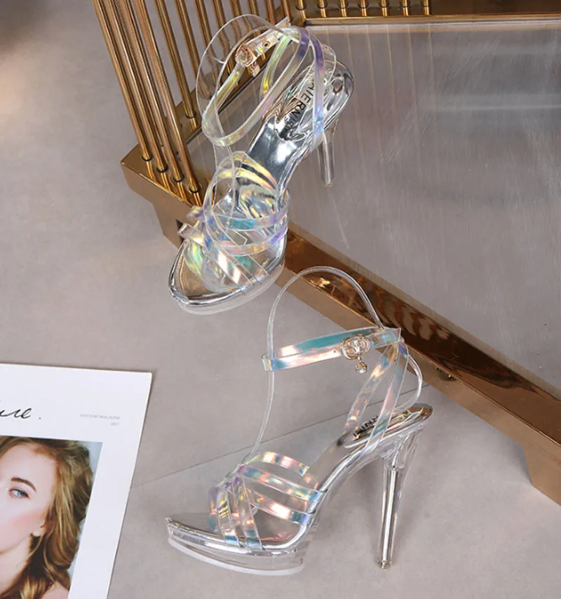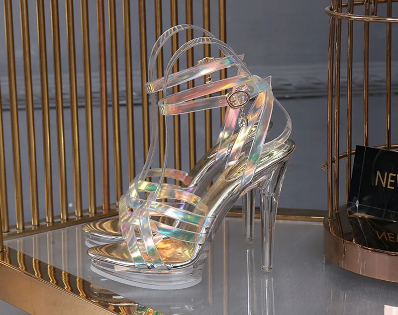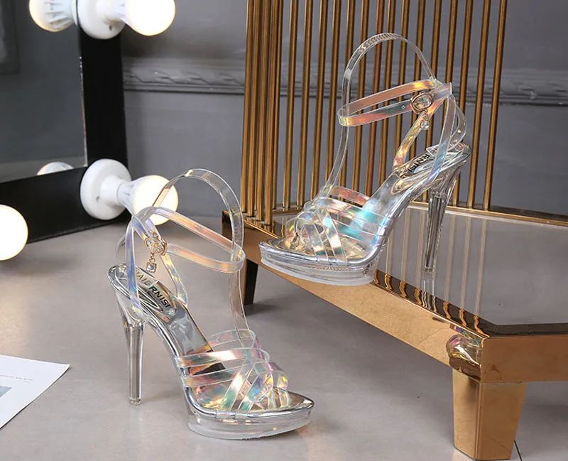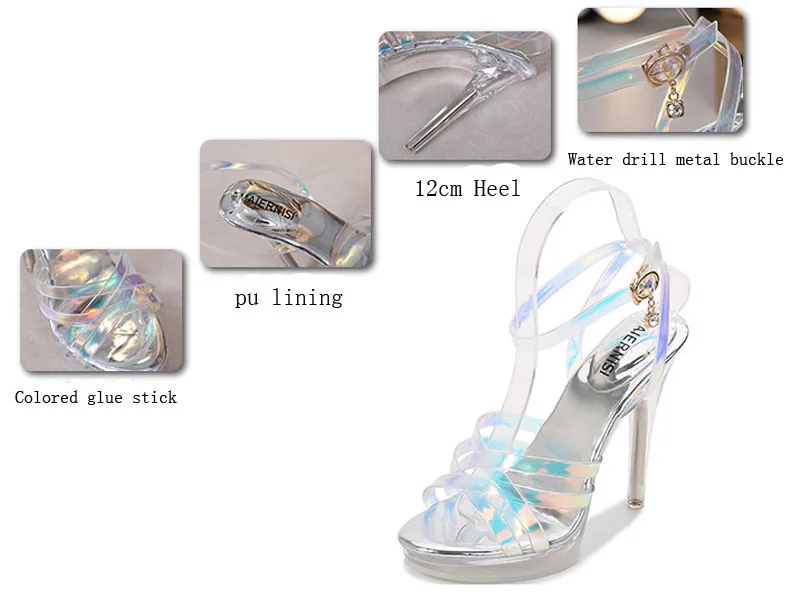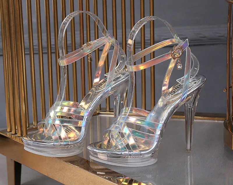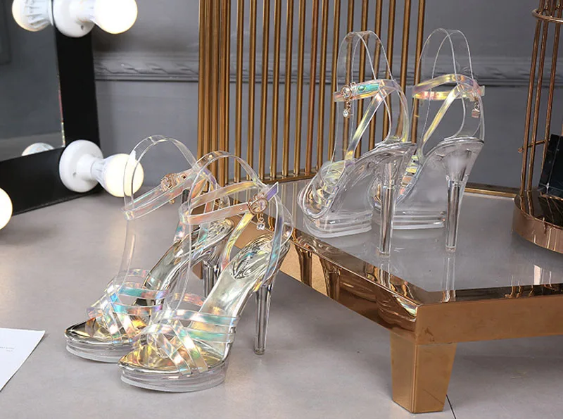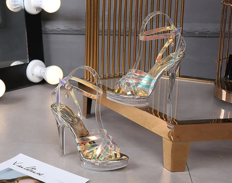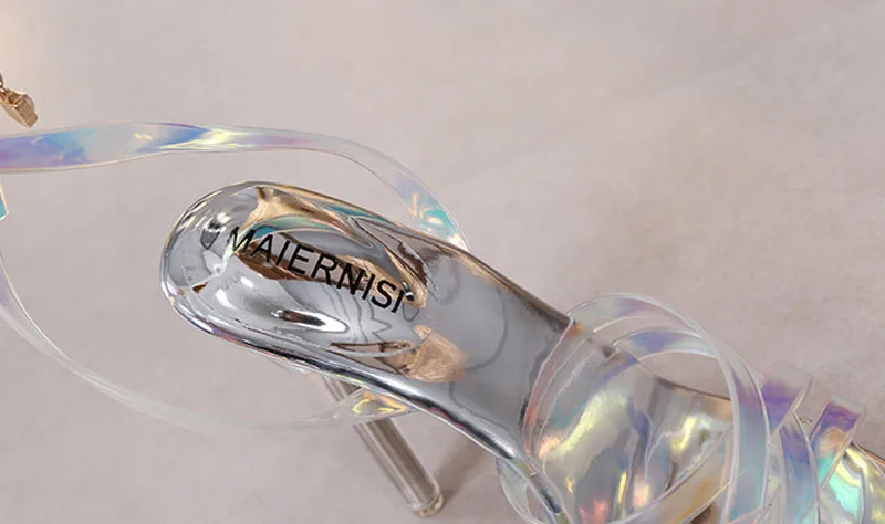 Новинка 2021, туфли на высоком каблуке, меняющие цвет, модные босоножки с клейкой полосой из стекла, босоножки на высоком каблуке из лака, женские босоножки