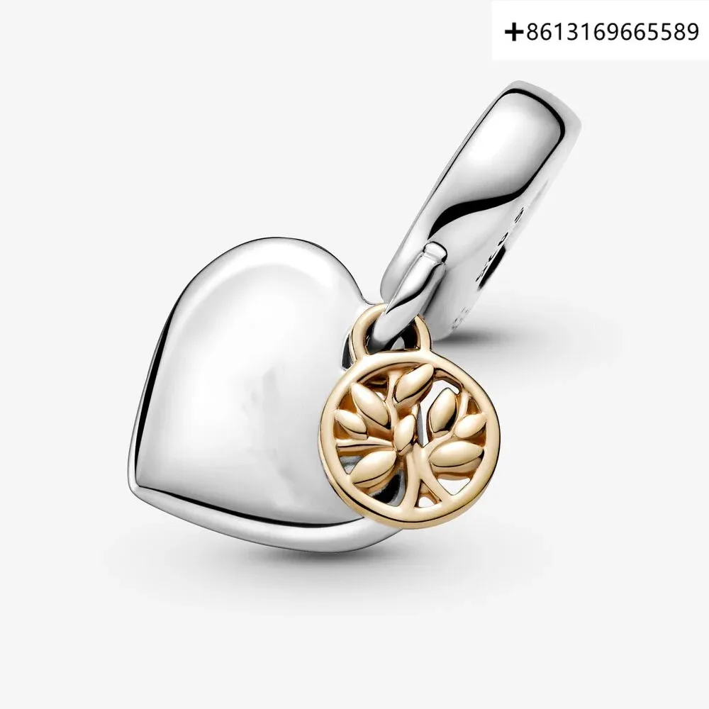 Мужские и женские подвесные украшения из серебра 925 пробы, двухцветные украшения в форме сердца из семейного дерева
