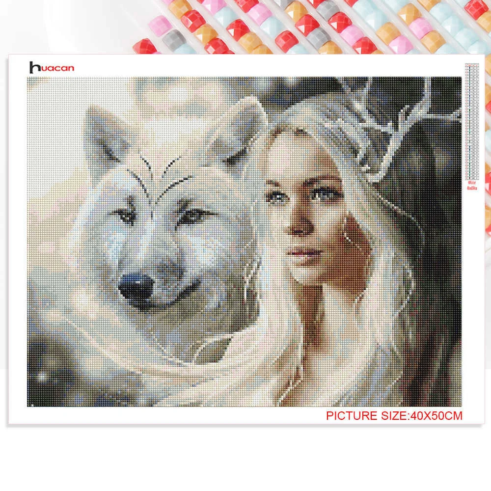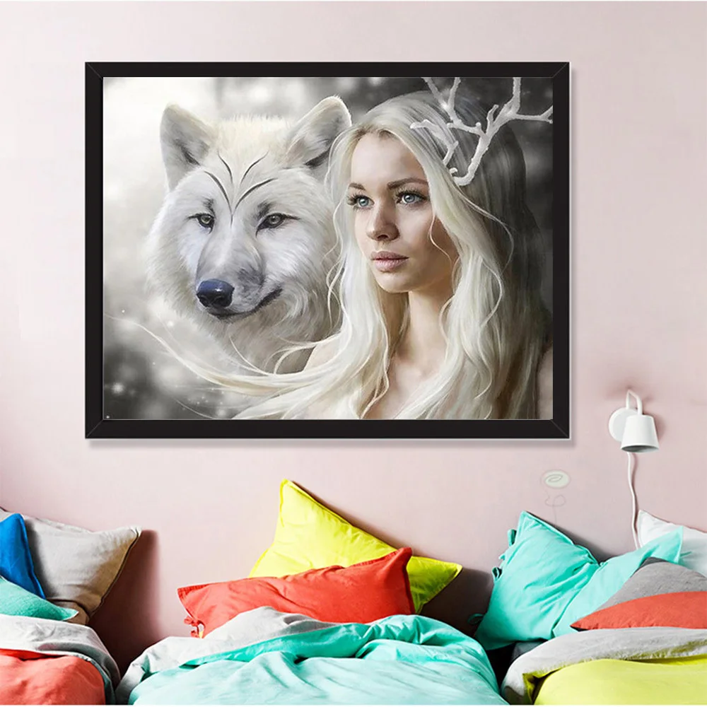 Картина-мозаика 5D с изображением женщины, волка, квадратные Стразы