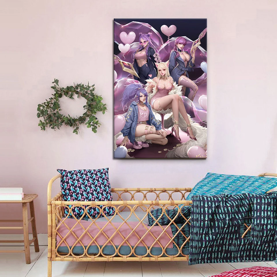 Игровая Лига штатива, новейшая кожа, Постер KDA для девочек, художественное украшение, живопись, домашний кавайный Декор для комнаты, Холщовый постер