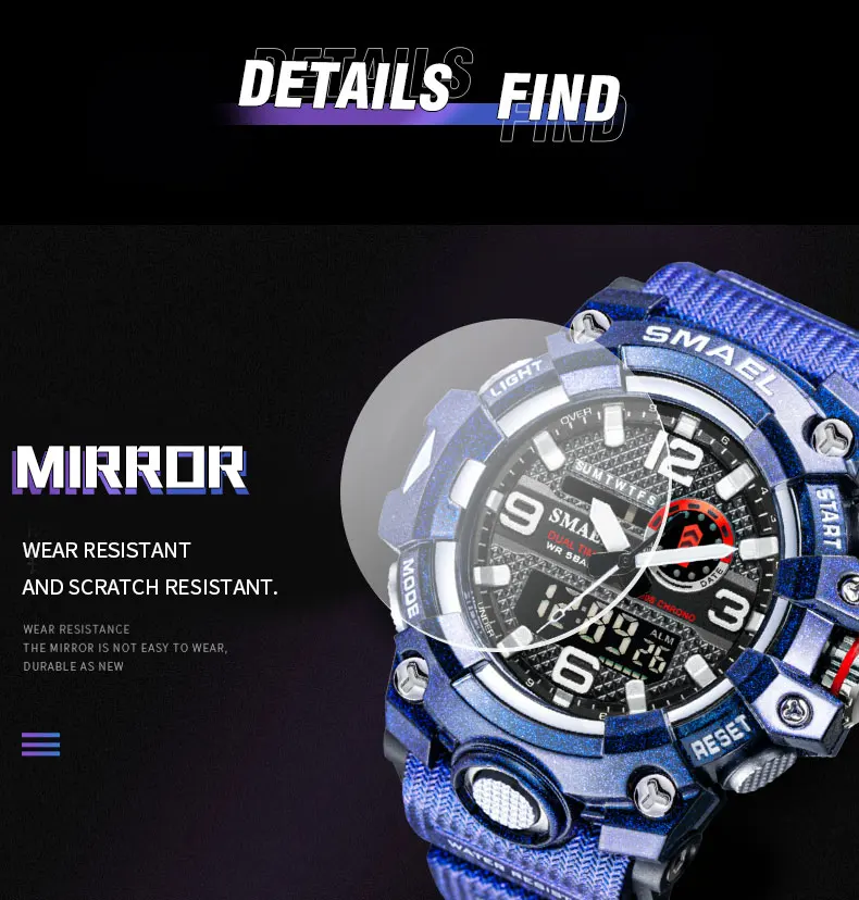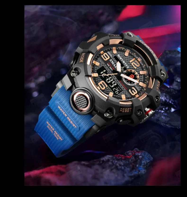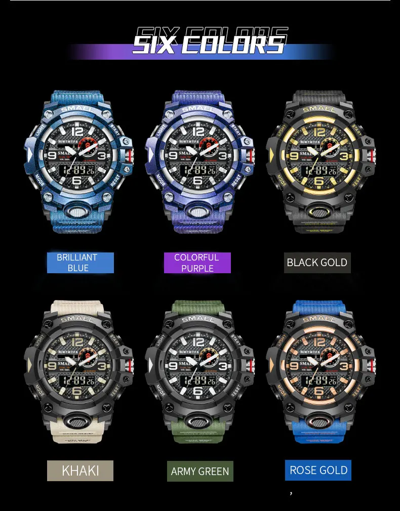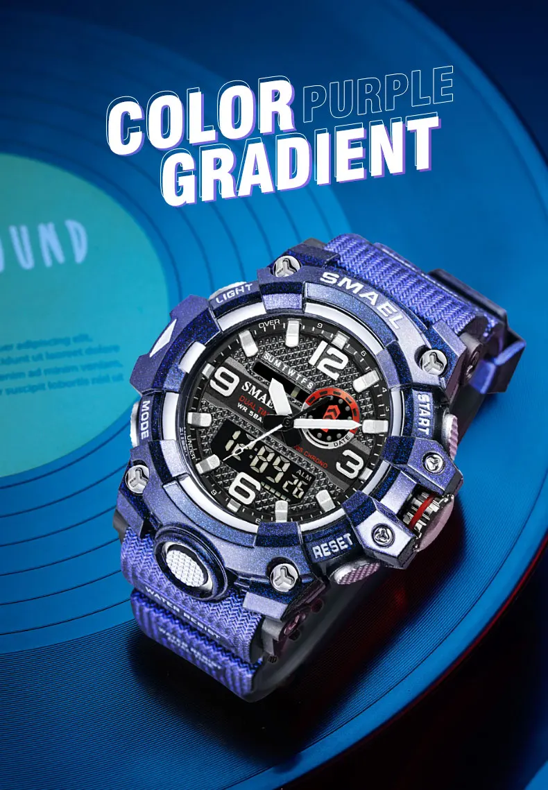 Мужские модные повседневные часы SMAEL, электронные цифровые часы со светящимся указателем и двойным дисплеем времени, водонепроницаемые автоматические обновления