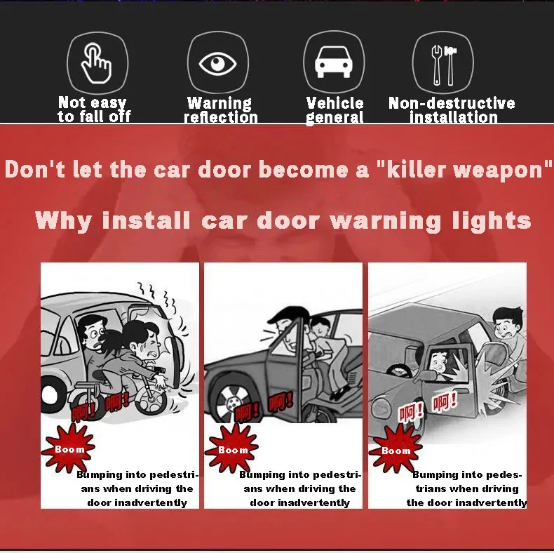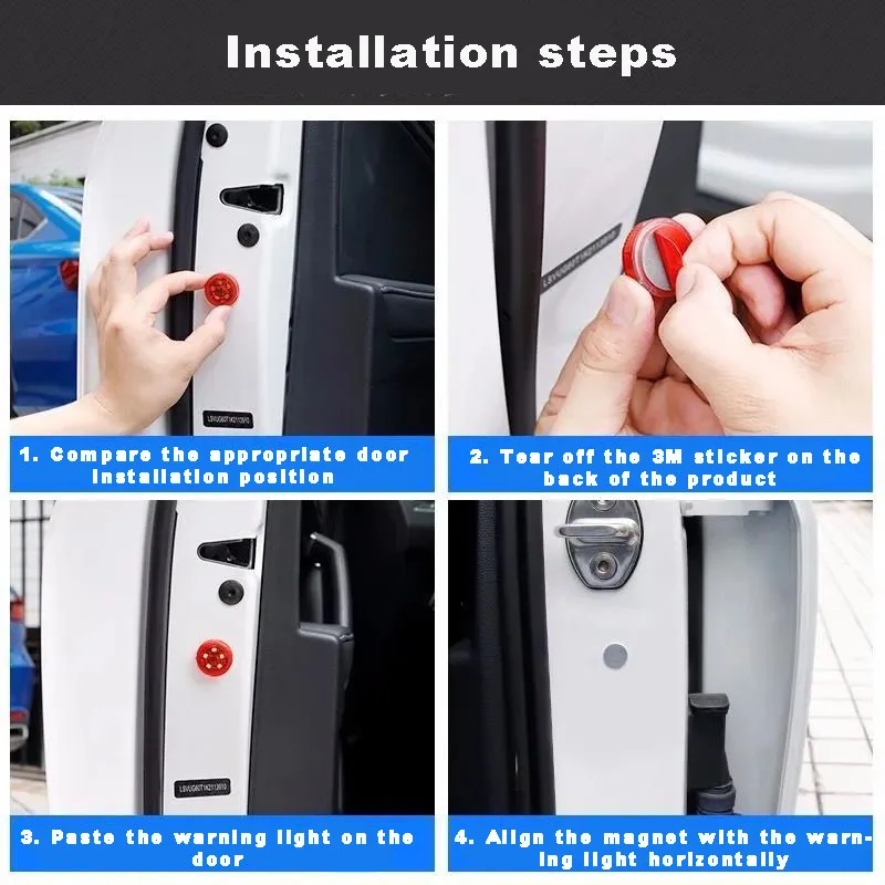 -Этот продукт относится ко всем моделям автомобилей-Новый светодиодный светильник для предотвращения столкновений, встроенный высокотехнологичный компонентный датчик, длительный срок службы-Когда дверь открывается, она быстро мигает, предупредив заднюю часть, чтобы избежать аварии-Без внешнего провода, просто вставьте к двери автомобиля легко-Первые 6 секунд режима «быстрая вспышка», лучшее предупреждение в задней части автомобиля. После 180 секунд освещения, он будет выключен автоматически.