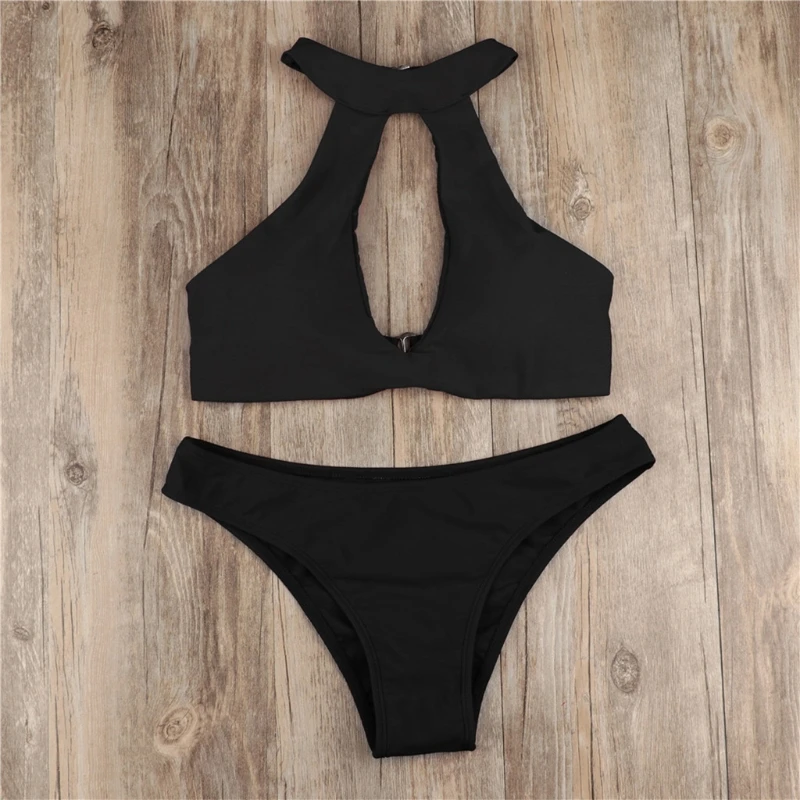 Женский купальник, однотонный купальник с чашками пуш-ап и лямкой через шею, размера плюс