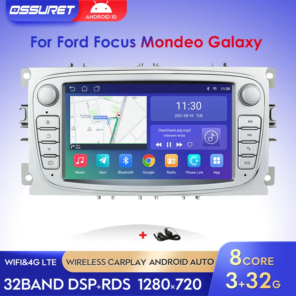 Для Ford Focus Mondeo S-Max Galaxy C-Max Kuga Transit Connect Android10 2DIN автомобильный GPS Радио мультимедийный плеер 7 ''стерео wifi SWC