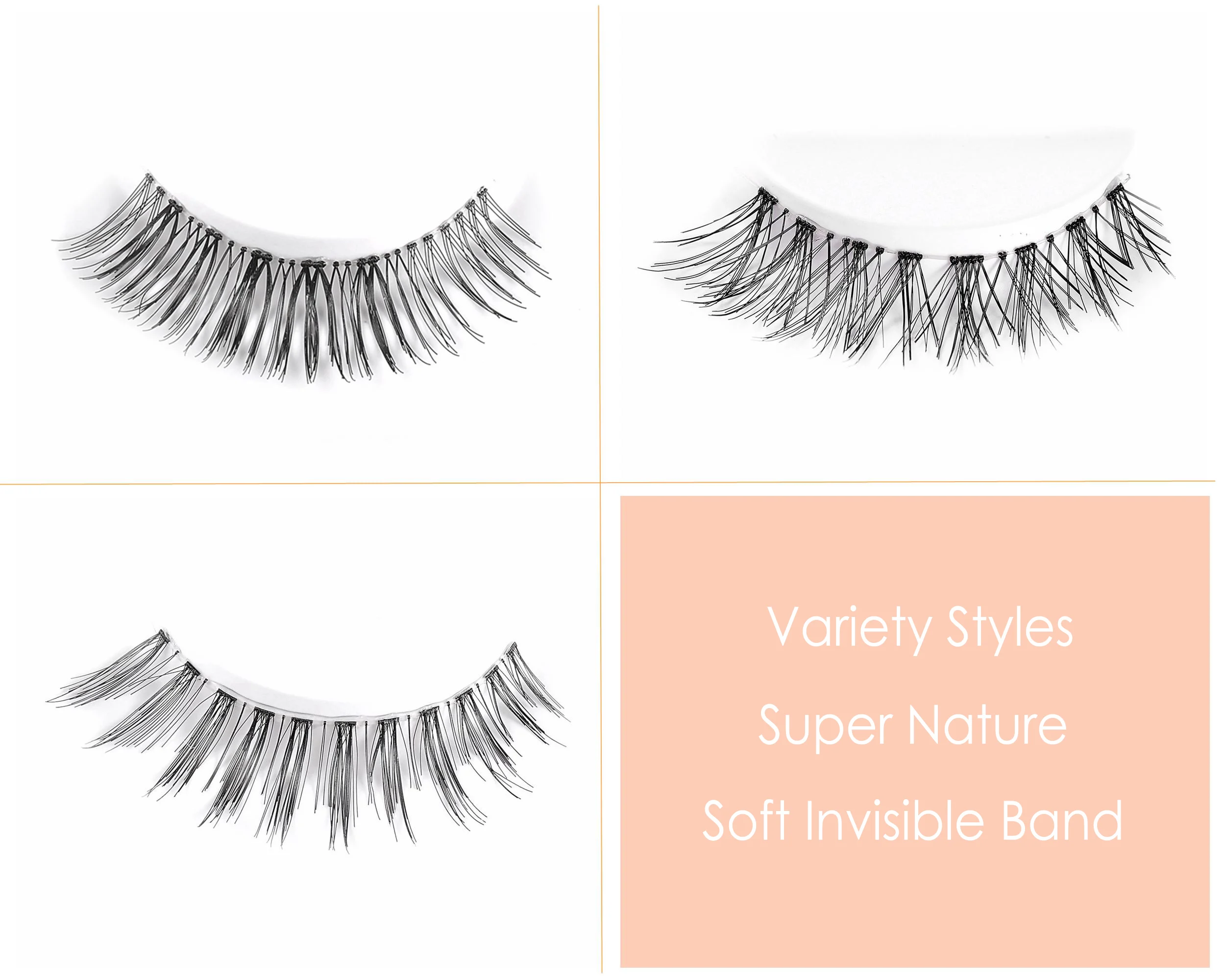 Набор накладных ресниц 20 пар, трафареты искусственные, накладные ресницы для наращивания ручной работы натуральные мягкие невидимые ленты, длинные густые многоразовые макияж
