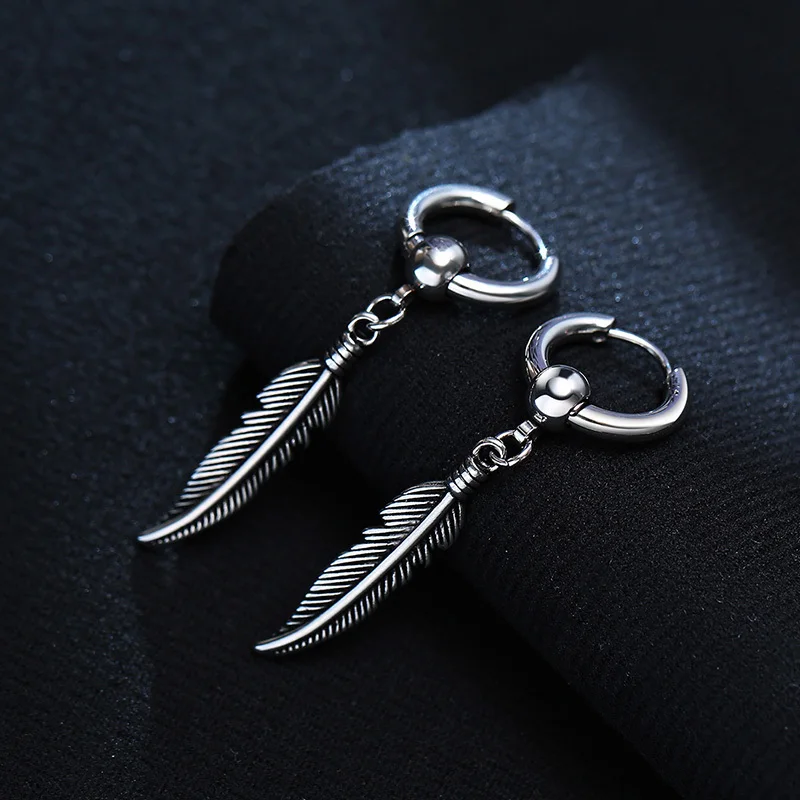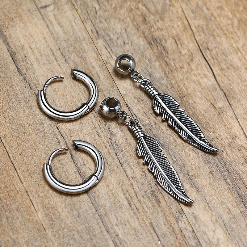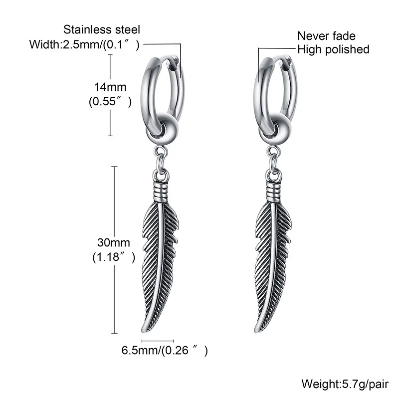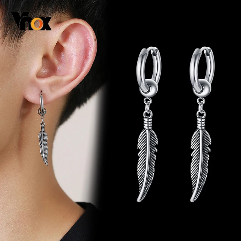 Серьги-подвески Vnox из нержавеющей стали для мужчин и женщин, ювелирное изделие с листьями в форме пера, звеньевая цепь, аксессуар-клипса в стиле панк, 1 шт.пара