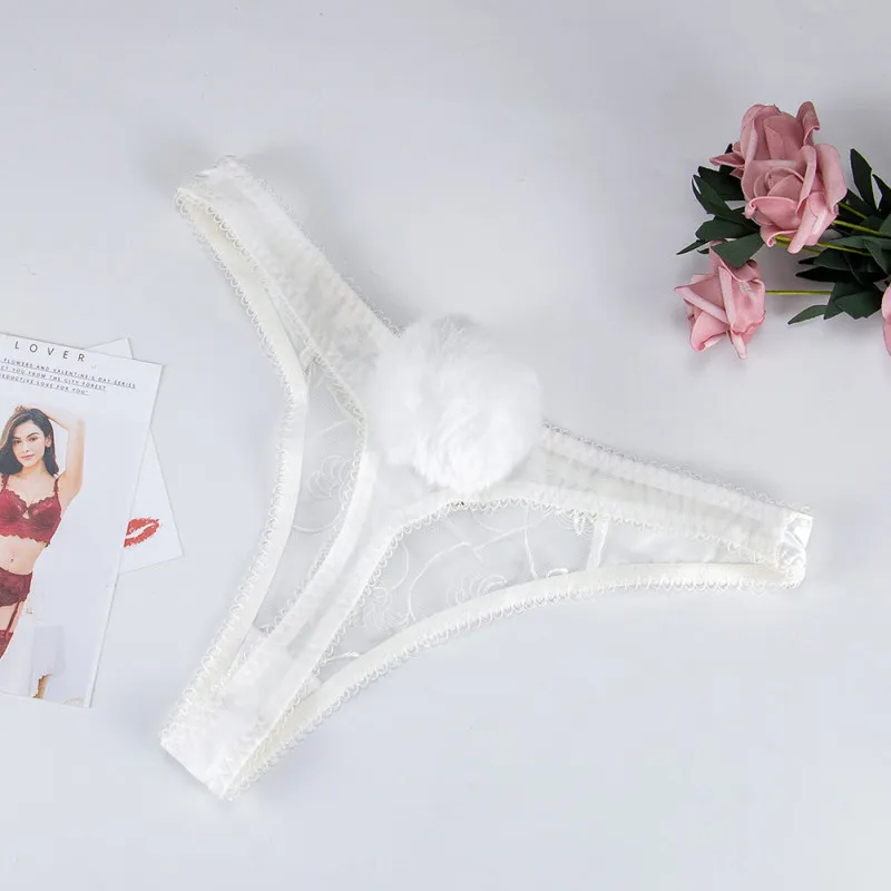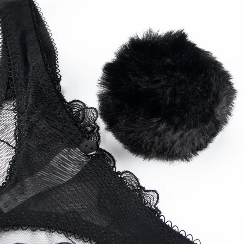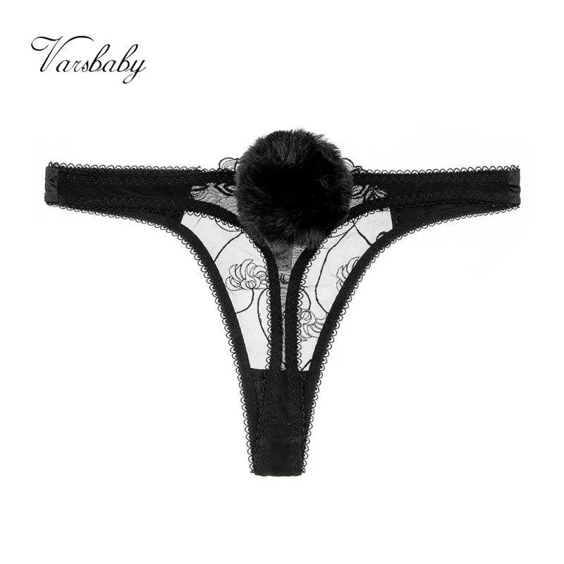 Varsbaby вышитые сетчатые кружевные стринги со съемным кроличьим хвостом женские трусики