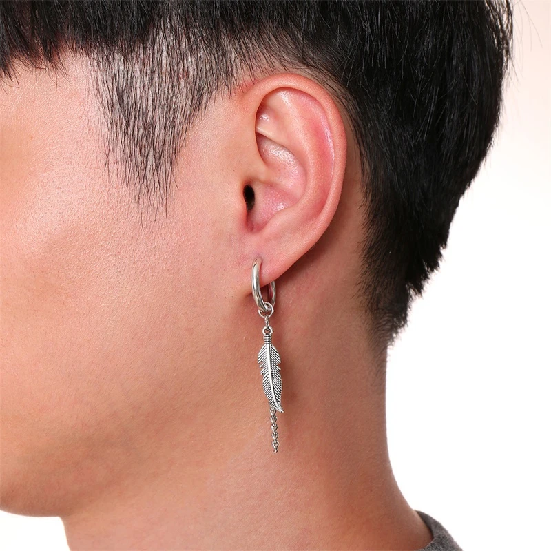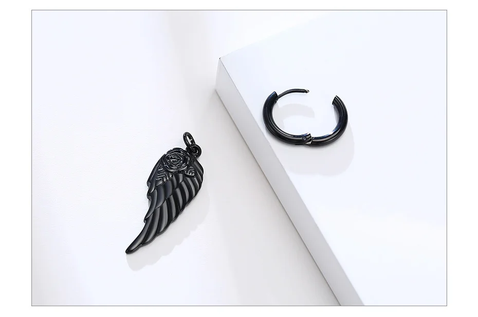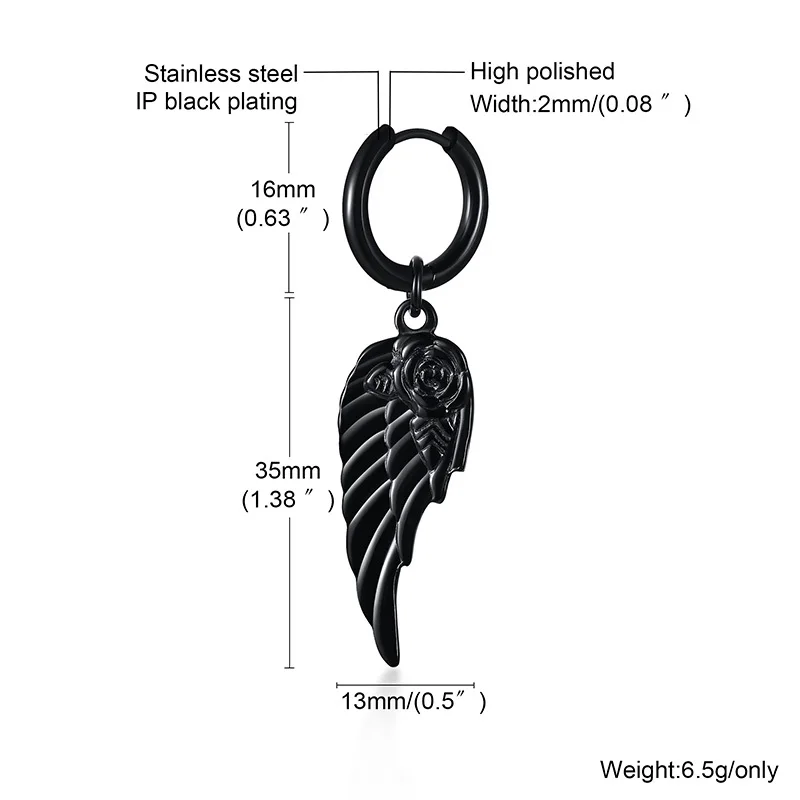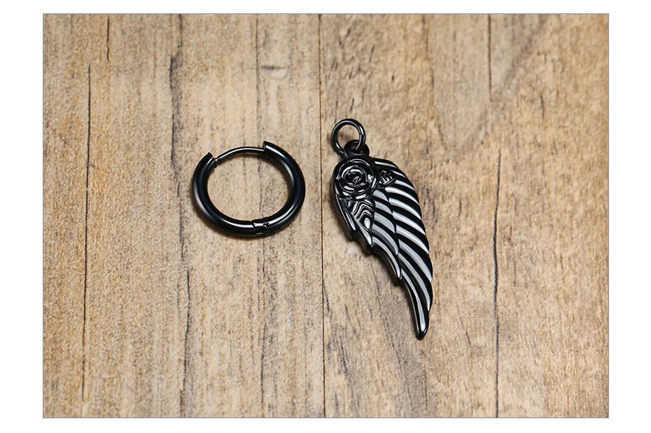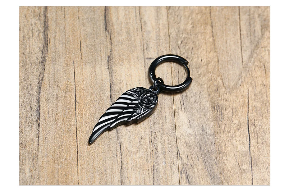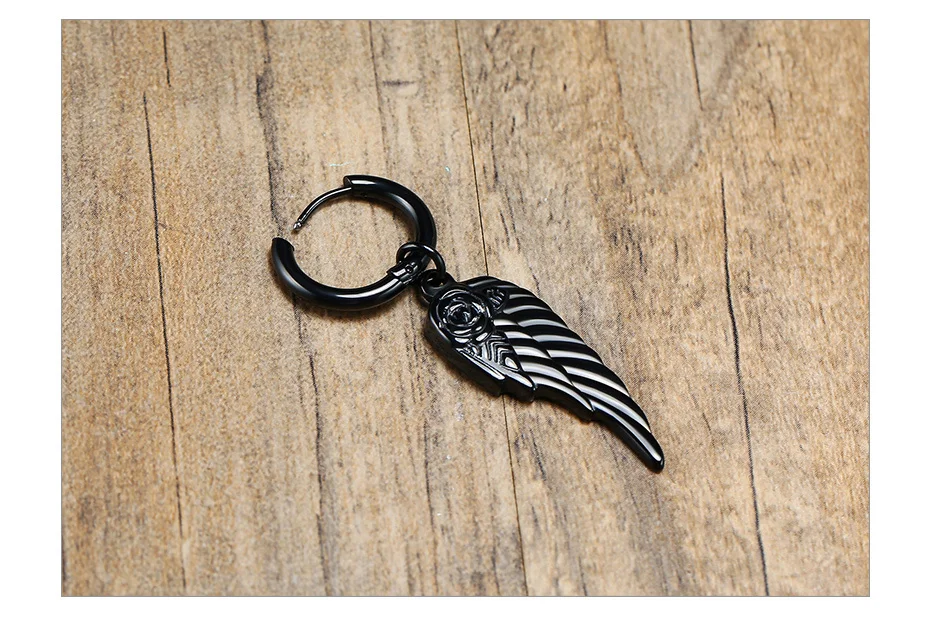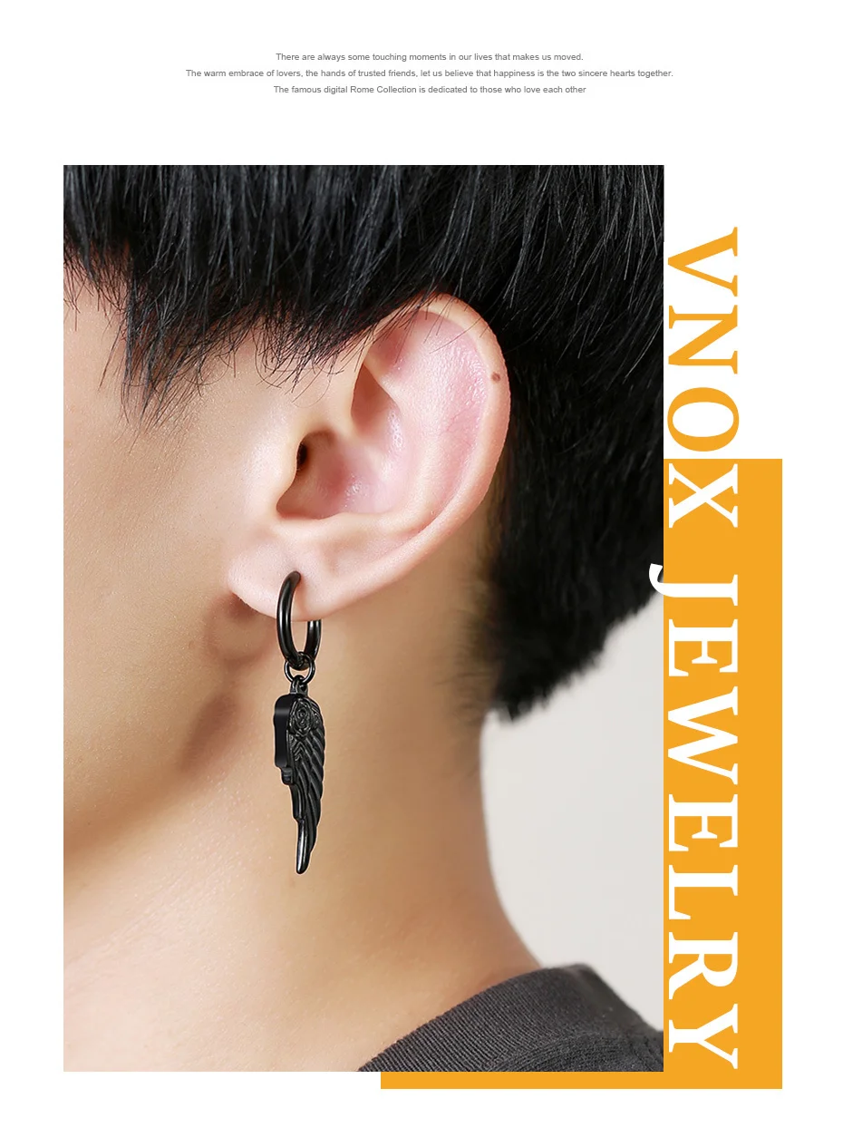 Vnox цельнокроеное платье перо крыло висячие серьги в виде капель с кристаллами в форме для мужчин и женщин, нержавеющая сталь звено цепи серьги панк уха аксессуар, мальчик металл рок ювелирные изделия