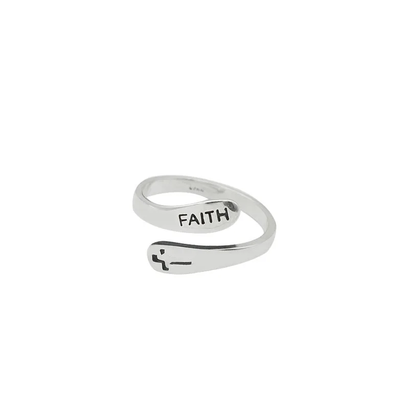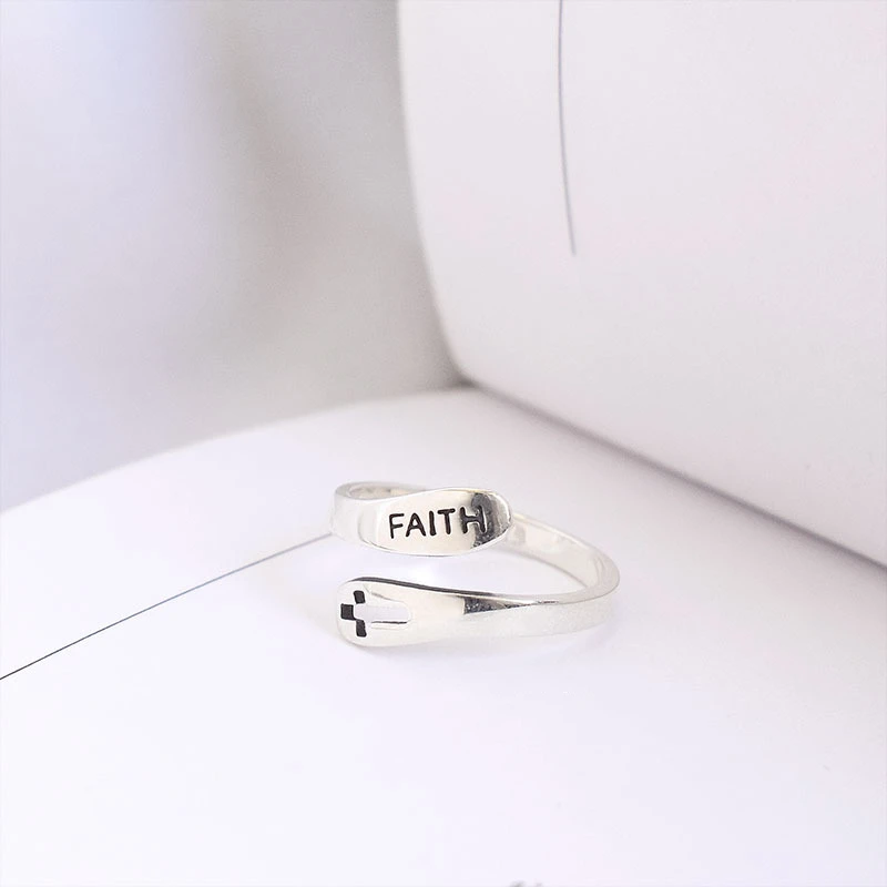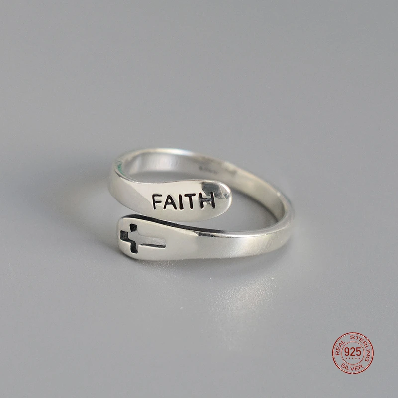 LKO реальная планка серебряные регулируемые перекрестные кольца для женщин письма вера крест кольца для мужчин витые