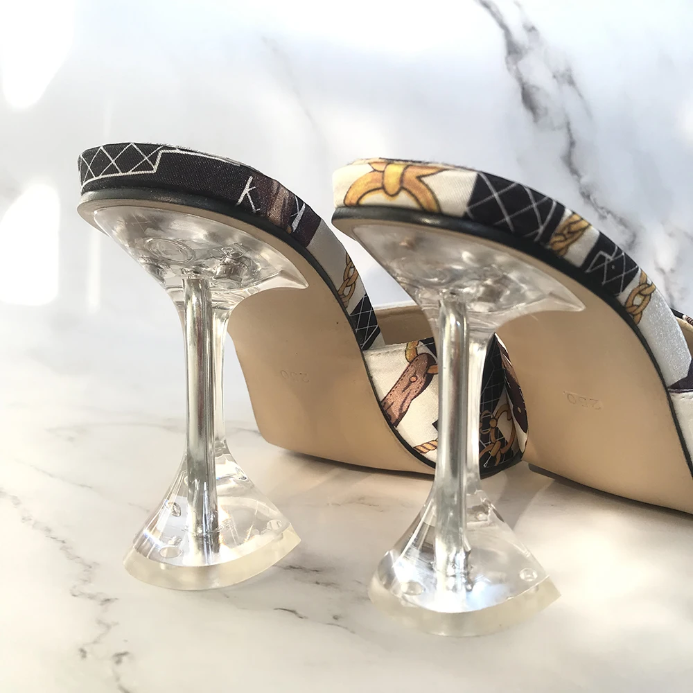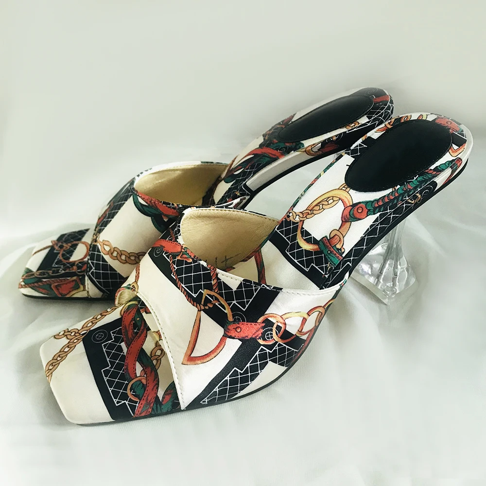 Мюли женские на высоком каблуке, тканевые шлепанцы с вышивкой, Уличная обувь для вечерние, шикарное вечернее платье, большие размеры 46