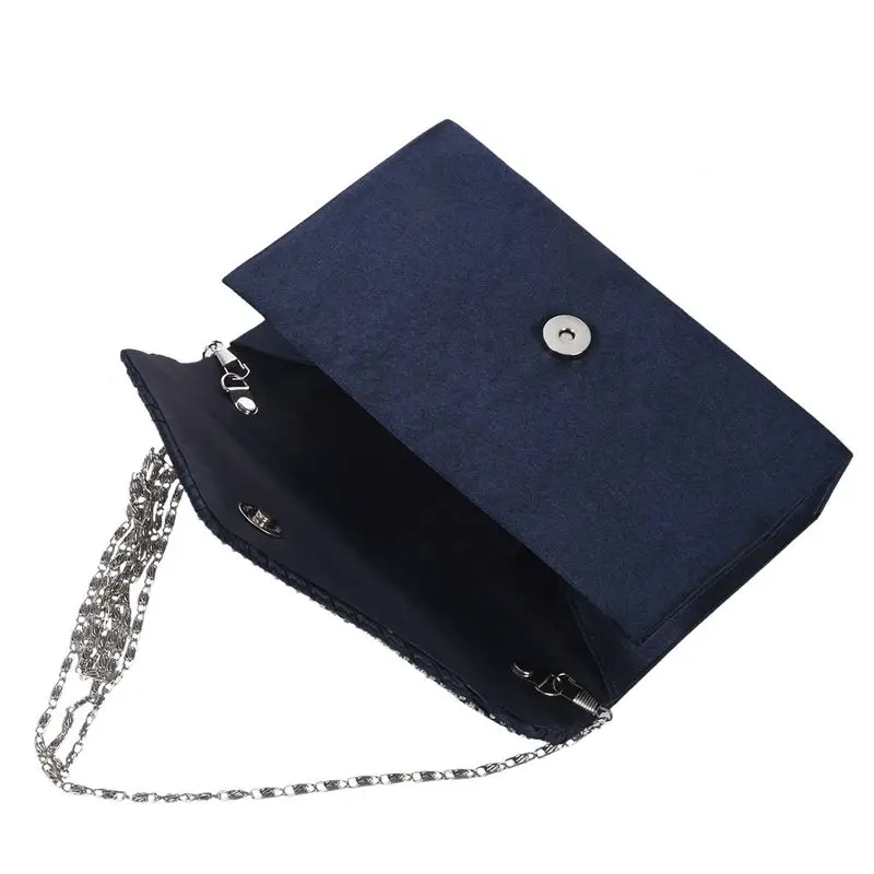 Женский Шелковый клатч с бриллиантами на лице, сумка через плечо, вечерняя Свадебная сумка для выпускного вечера, сумка-портфель с цепочкой (темно-синий)