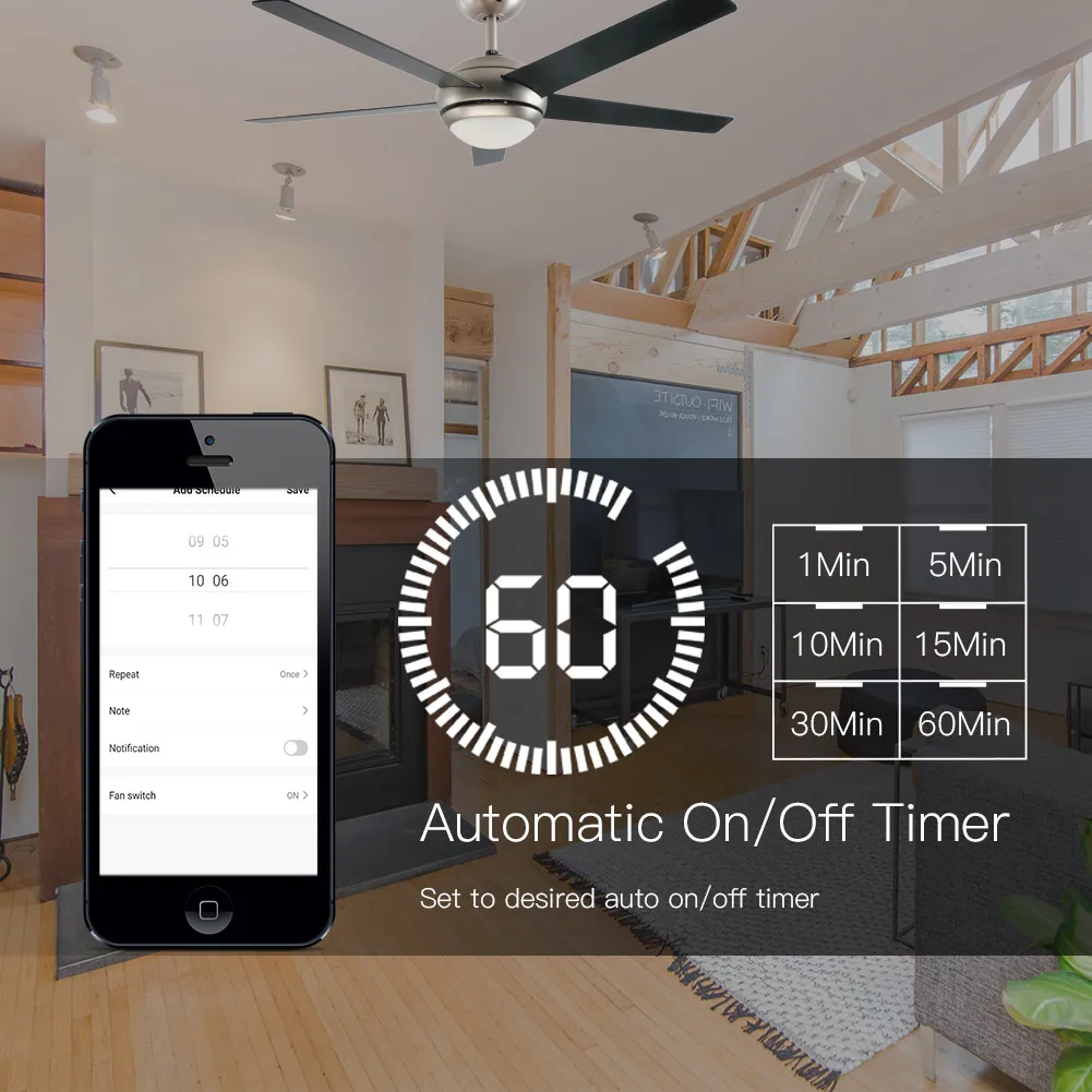 3. Скорость вентилятора может быть скорректирована с 1% до 100%, больше вариантов для удовлетворения личных потребностей и предпочтений; Совместимость с Alexa и Google Home для голосового управления без рук для регулировки скорости вентилятора; также можно управлять через приложение Smart Life/Tuya в любое время и в любом месте; Настройка статуса реле и запоминание последнего статуса реле опционально при выключении питания, Включение/выключение подсветки.