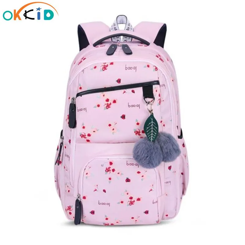 Рюкзак для девочек OKKID, школьный рюкзак розового цвета с цветочны...