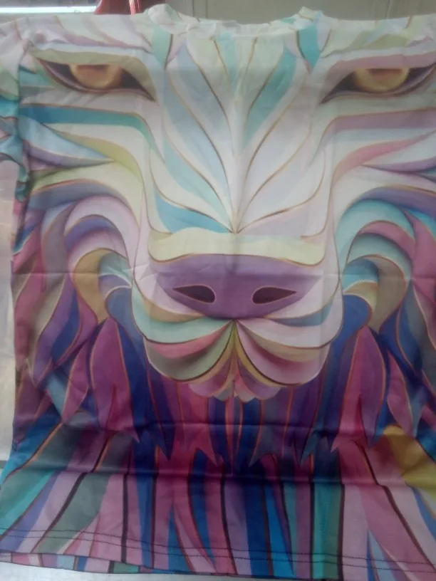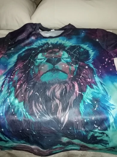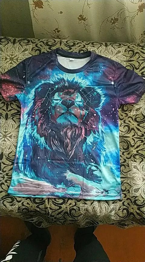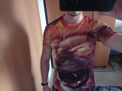 Хорошая футболка,ткань синтетика "в сеточку",как и большинство таких цветастых футболок.Принт не очень чёткий,но приемлимый,а вот цвет отдаёт коричневым,а не серым,как на фото продавца.Чуть позже добавлю фото.Продавцу большое спасибо!