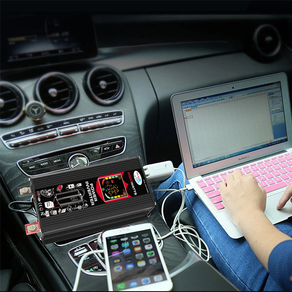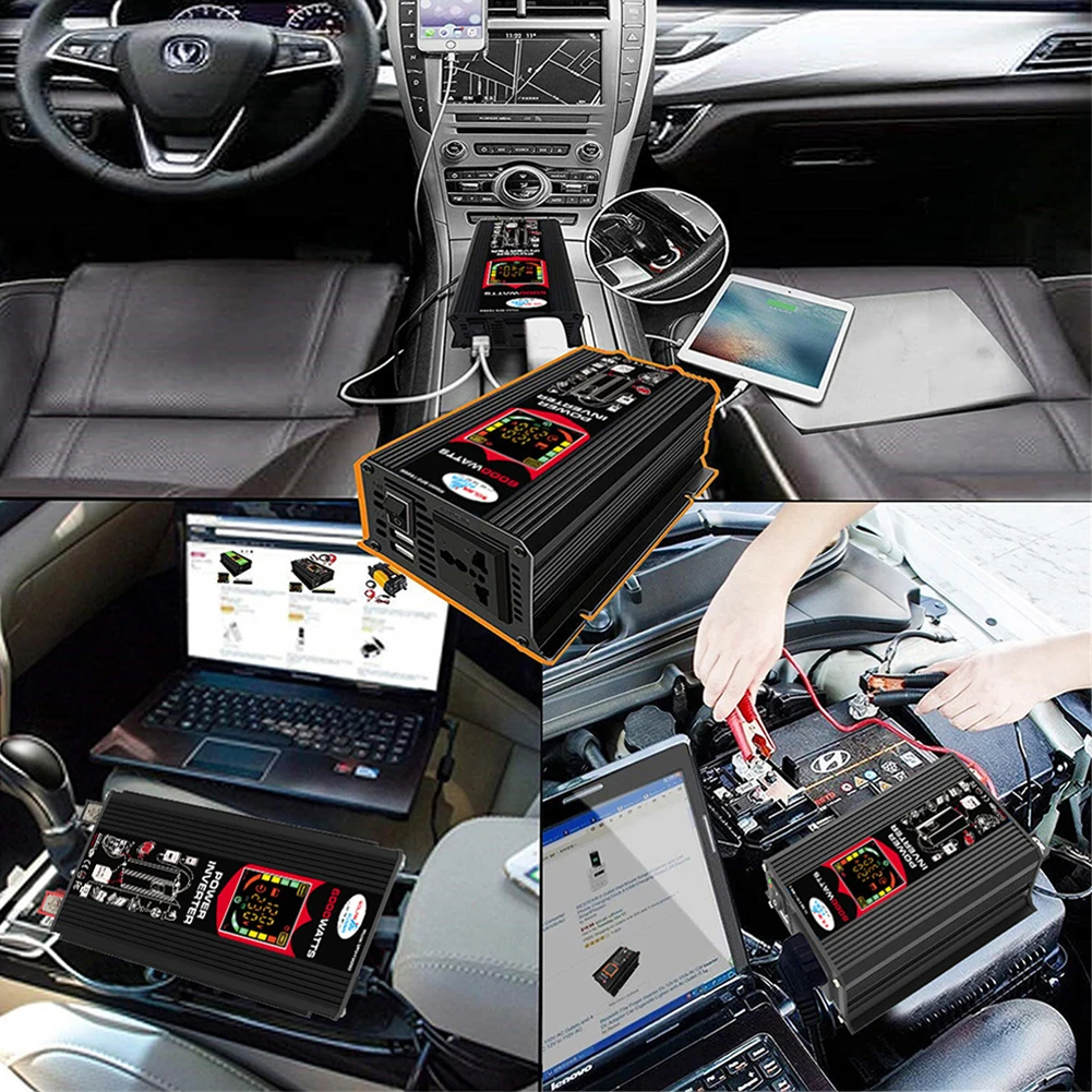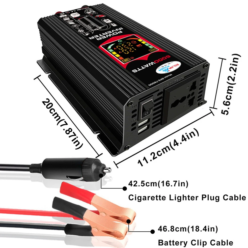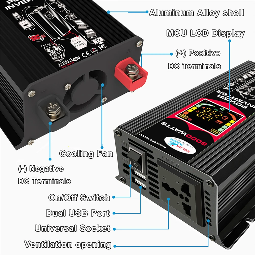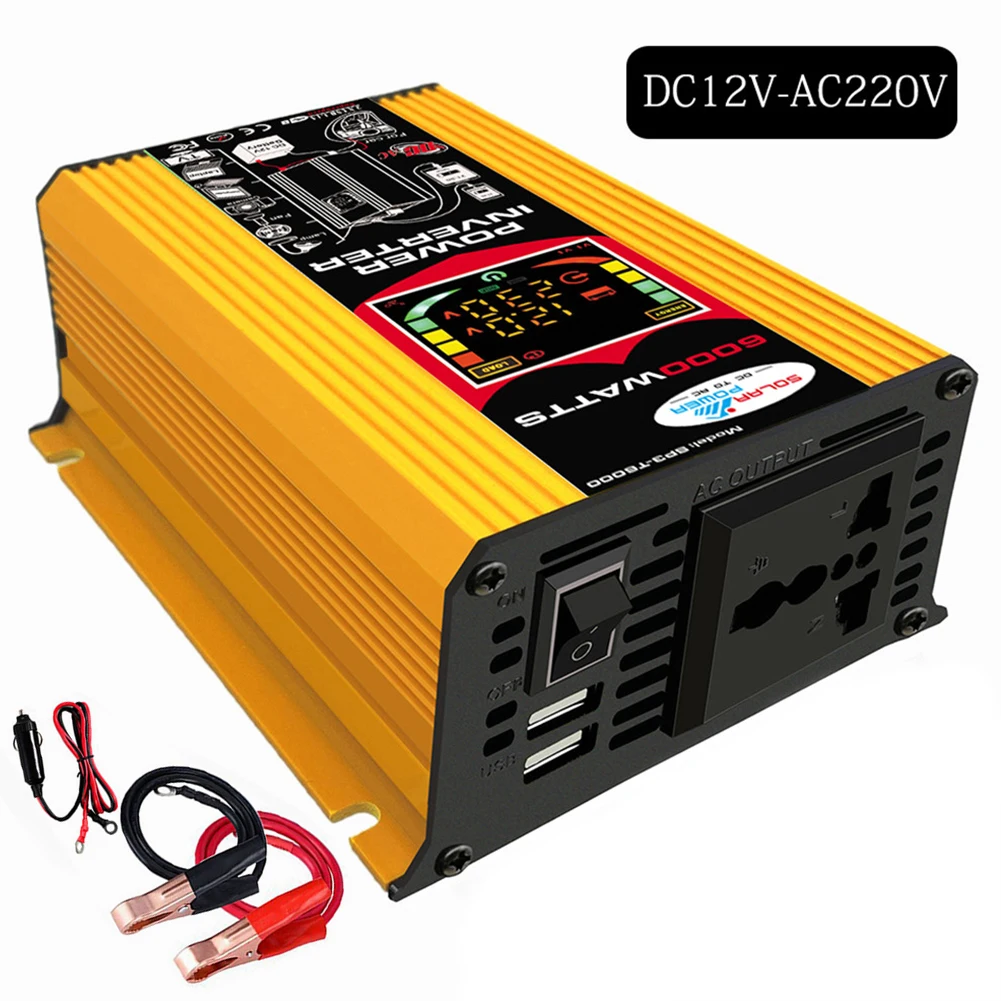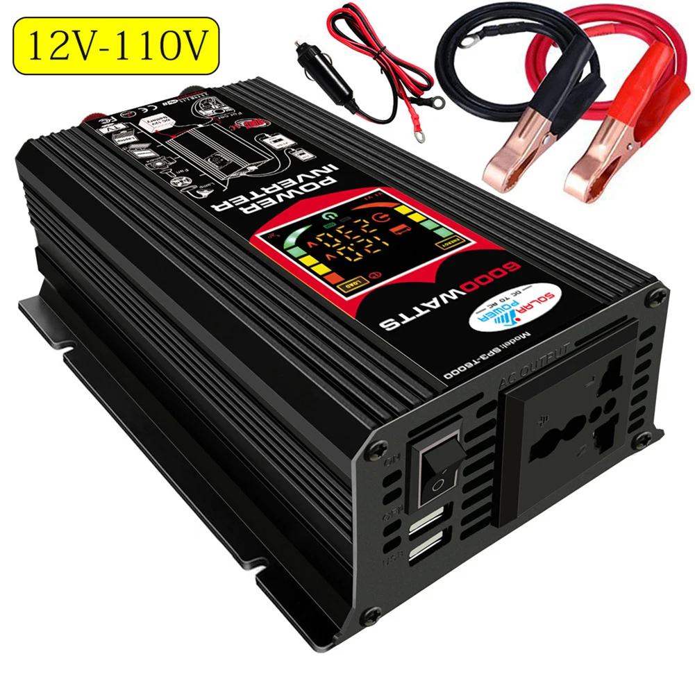 Автомобильный инвертор напряжения, трансформатор синусоидальной волны с ЖК-дисплеем, 6000 Вт, 12 В постоянного тока, двойной USB-порт, адаптер питания инвертора В переменного тока, 220 В, 110 В