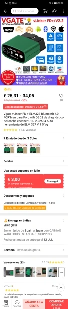 Страна: ES Color: vLinker V3.0 Ships From: China Доставка: Standard Shipping 07.07.2021