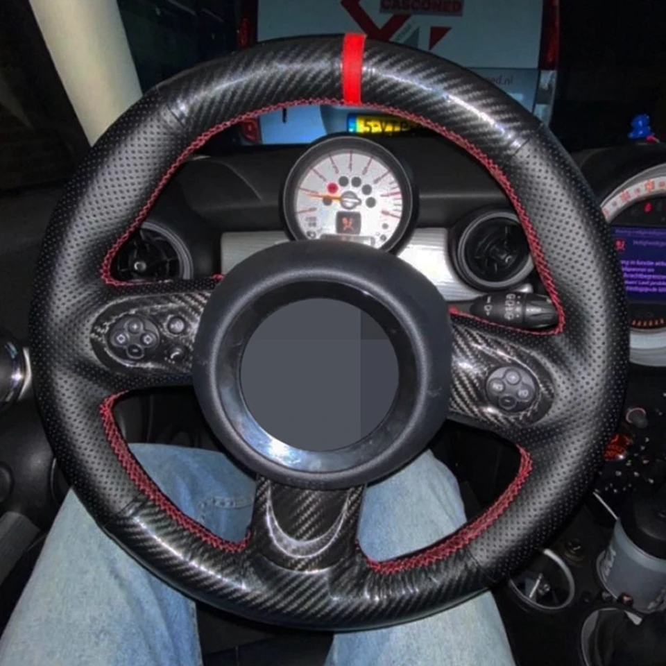 DIY чехол рулевого колеса автомобиля Мужская прошитая вручную обувь на нескользящей подошве из натуральной кожи углеродное волокно для Mini Cooper S one 2011