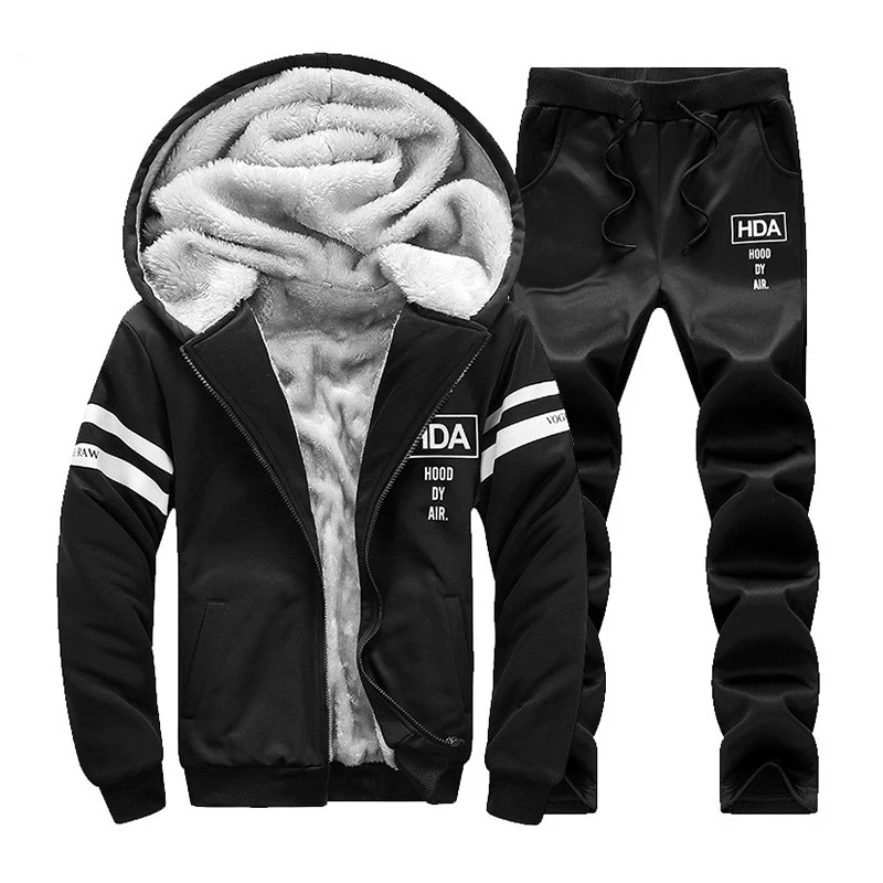 Мужской комплект из 2 предметов, толстая флисовая толстовка с капюшоном и спортивные брюки, мужской повседневный спортивный костюм, зимняя ветрозащитная одежда на молнии, брендовая теплая верхняя одежда