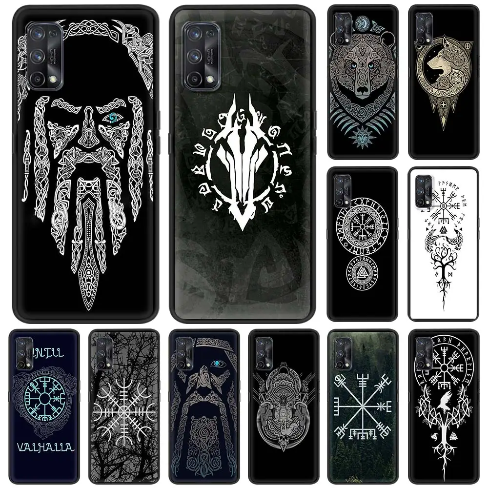 Чехол для Oppo Realme 6 7 C21 C3 XT 8 7i 5 Pro A53 A52 A9 2020 A94 A74 5G Капа черный корпус для телефона с бумажником и Viking вегвизир Одина Nordic
