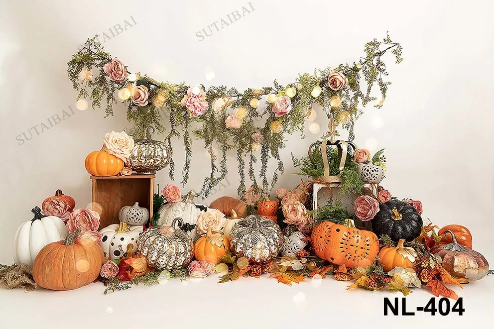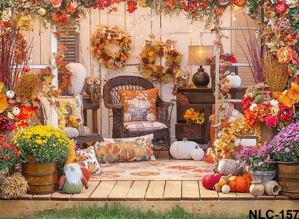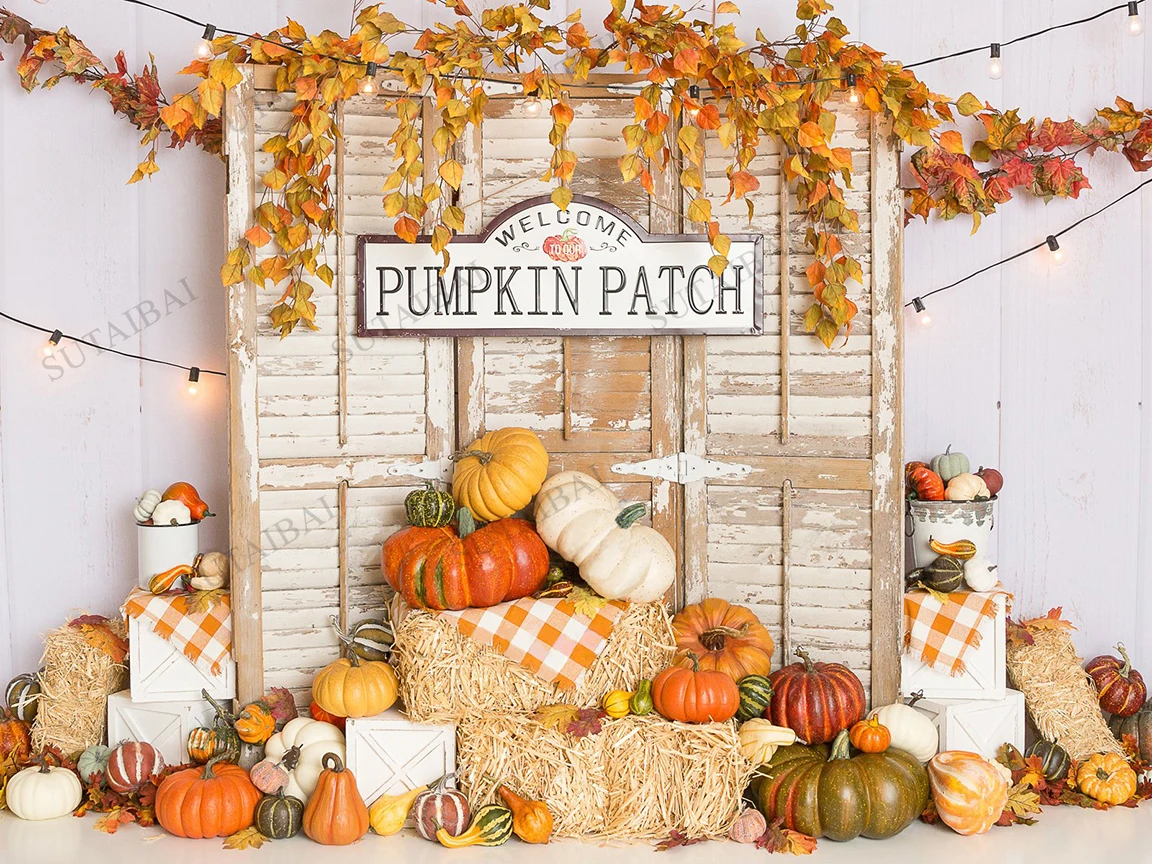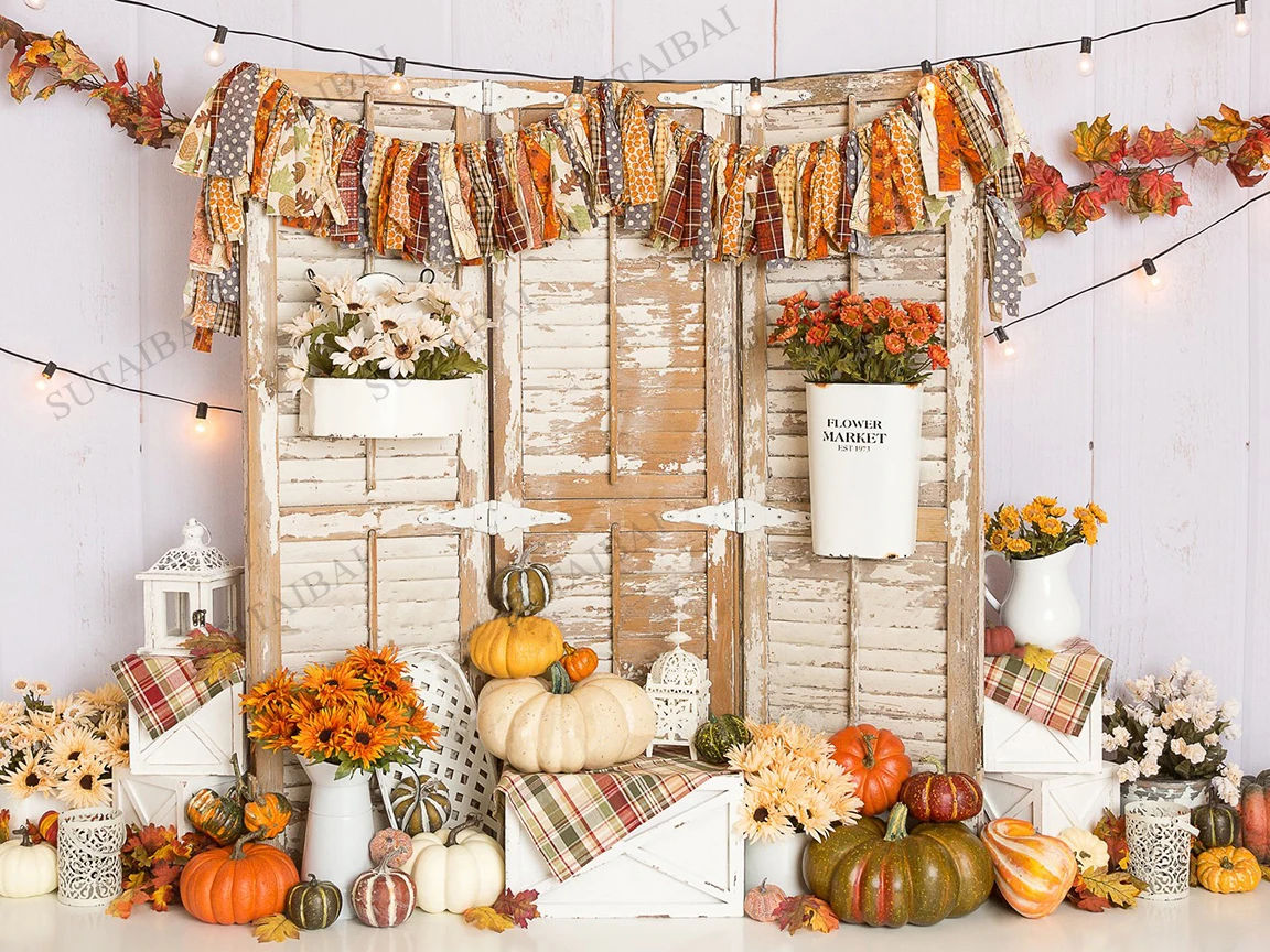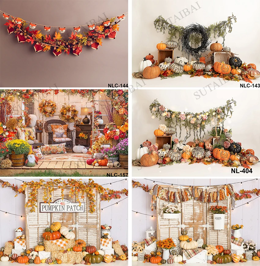 Фон для фотосъемки Хэллоуин Тыква День благодарения осенние подарки фоны стог декорация фон деревенская деревянная стена