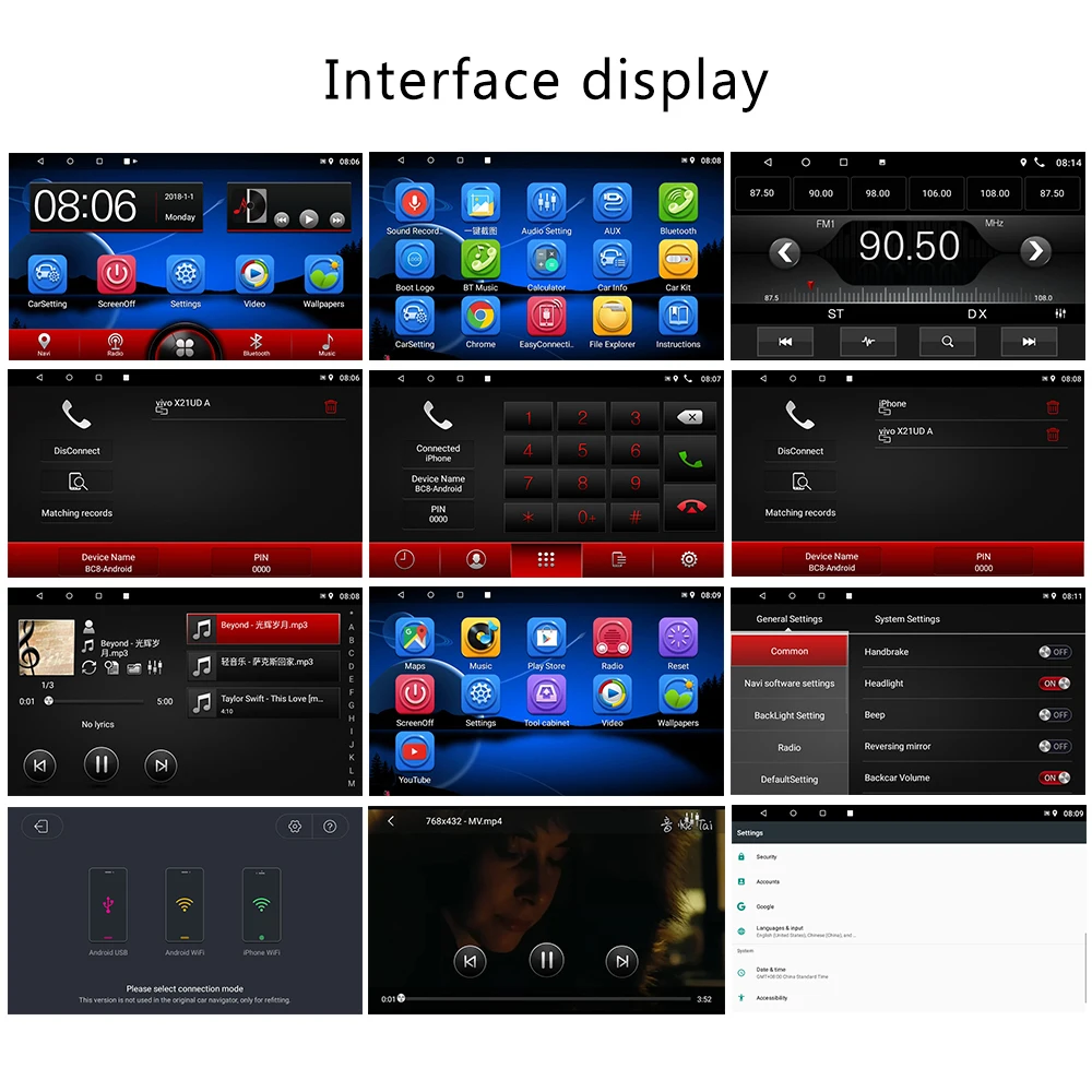 Screen size:9'' 2.5D Capacitive screen