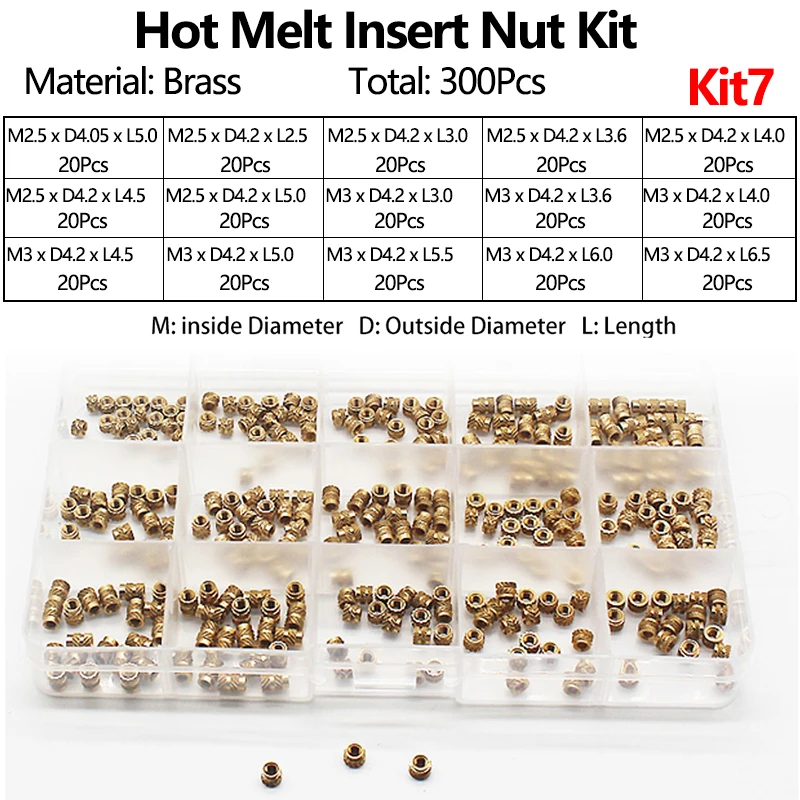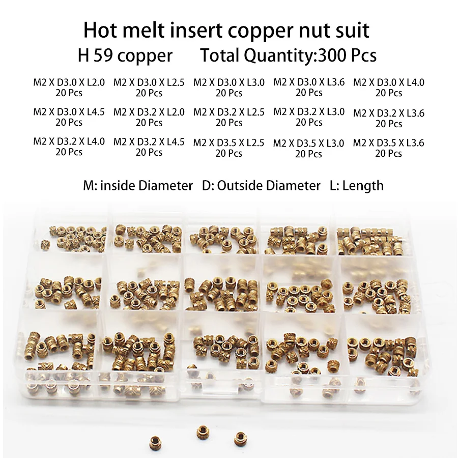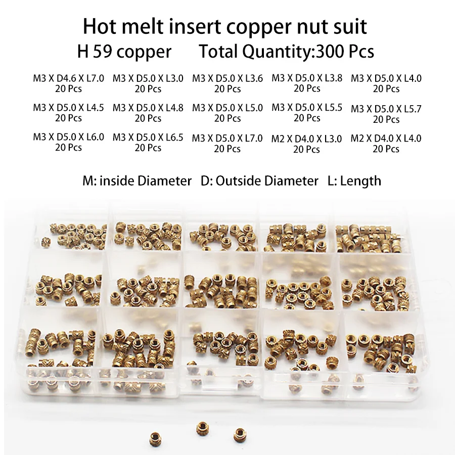 Набор латунных гаек с внутренней резьбой для литья под давлением с накаткой для 3D-печати