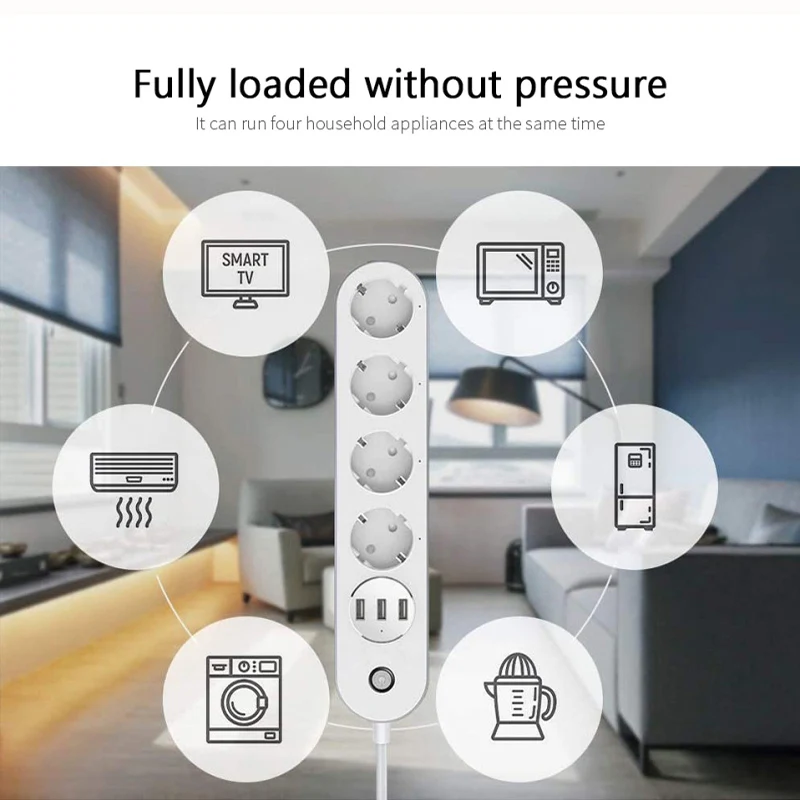 Умный удлинитель с Wi-Fi, 4 евророзетки, 3 USB-порта для зарядки