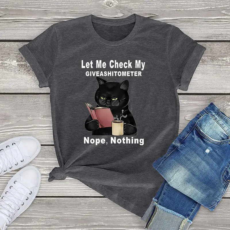 Забавные черные футболки с изображением кота Let Me Check My Giveashitometer, женские рубашки из 100 хлопка, унисекс, футболки kawaii Cat, винтажная одежда для мужчин и женщин, одежда Аниме, летние женские топы большого размера, уличная одежда 3xl