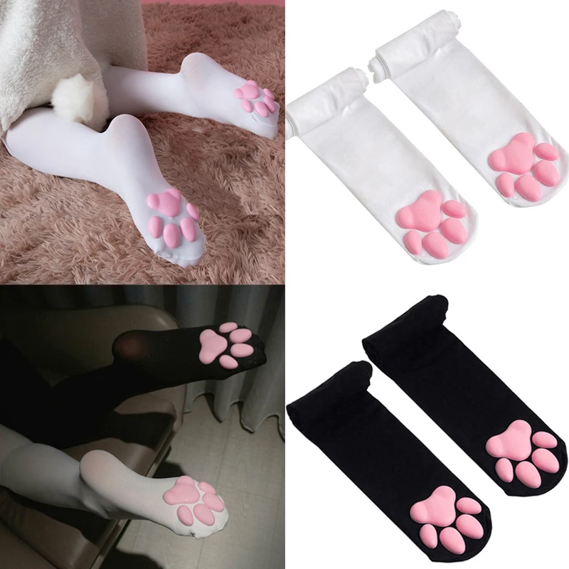 Гольфы с кошачьими лапками для девочек, чулки выше колена, женские ...