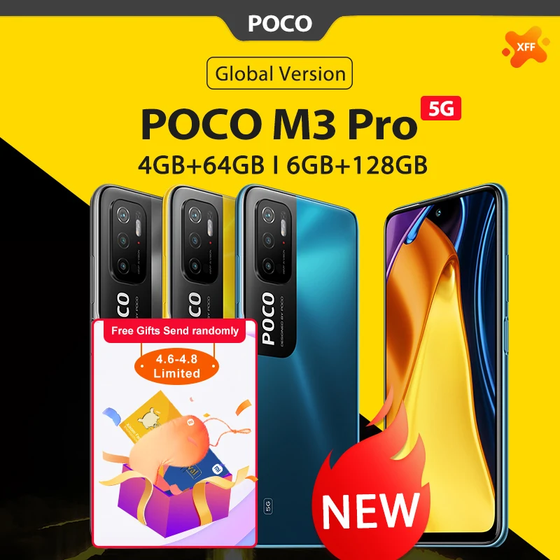 Глобальная версия POCO M3 Pro смартфон NFC 64 Гб128 ГБ Dimensity 700 Octa Core 90 Гц 6,5 "FHD + безрамочный экран с Экран 48MP тройной Камера 5000 мА-ч
