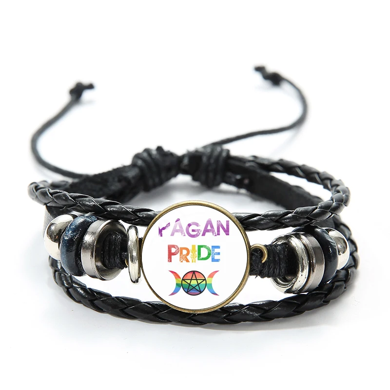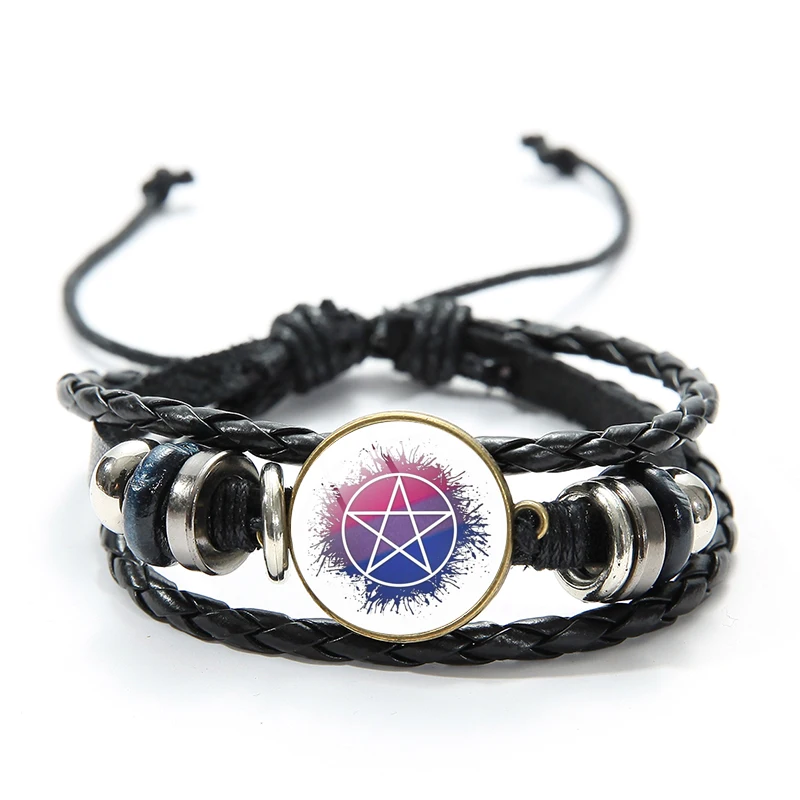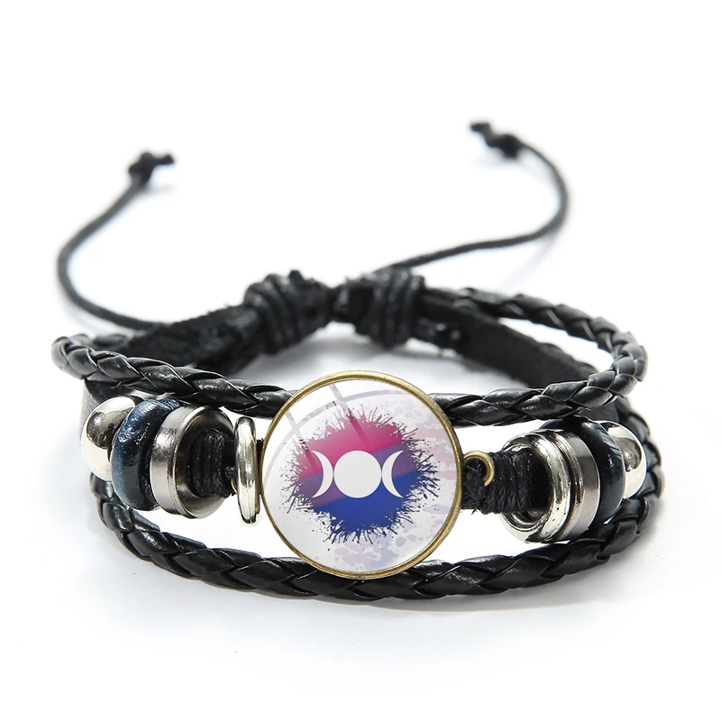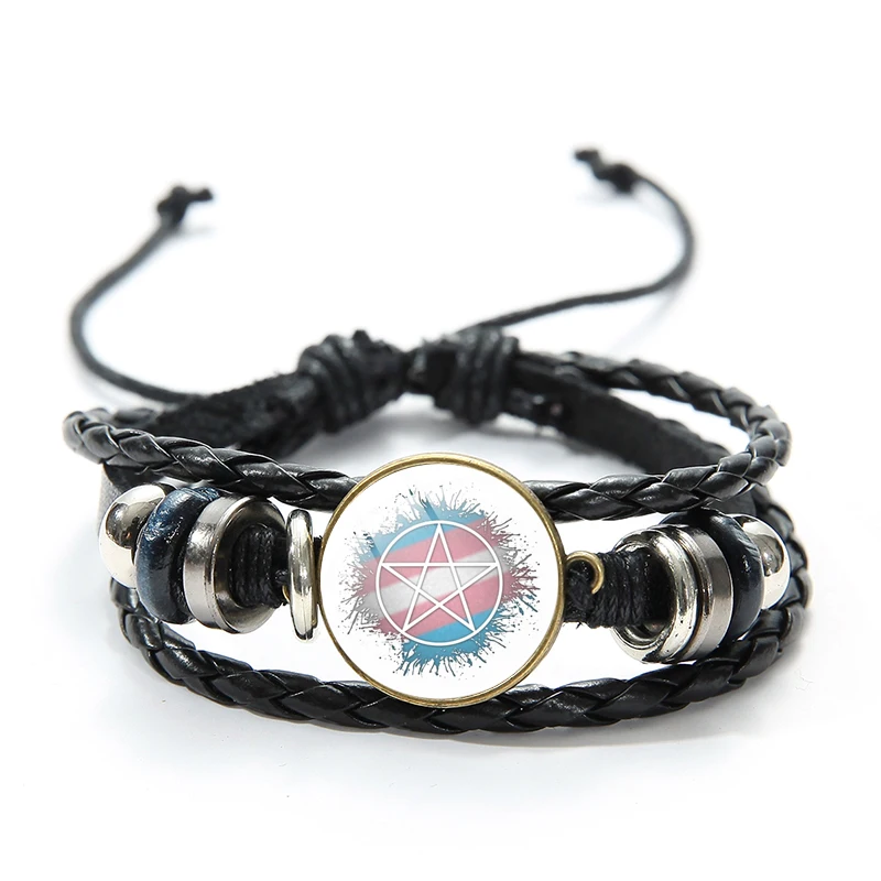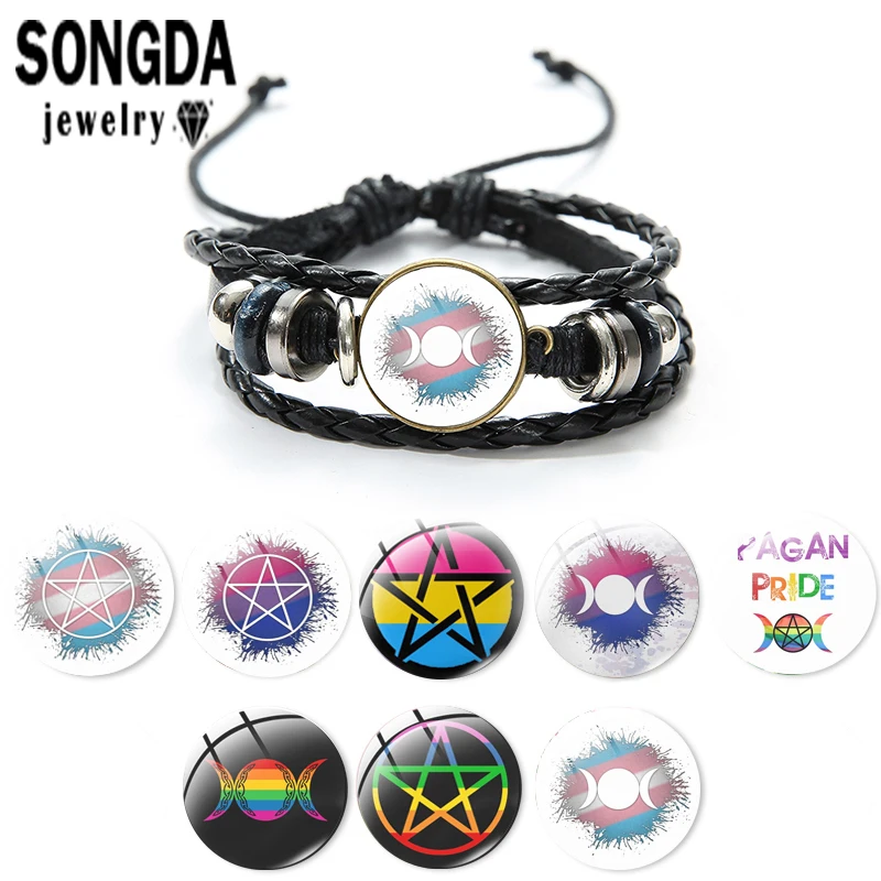 Женский кожаный браслет SONGDA, черный Регулируемый браслет с принтом в виде радужной пятиконечной звезды, бисексуальный браслет с тремя символами богини, очаровательные ювелирные изделия
