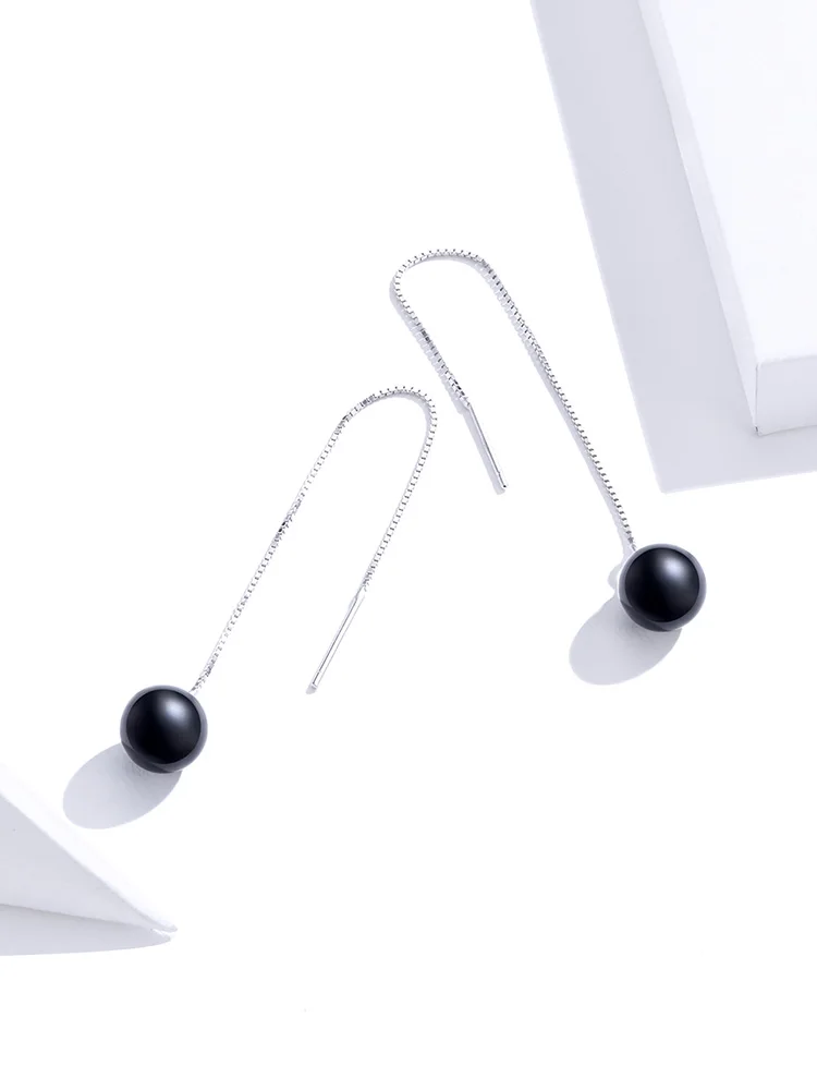 Женские длинные висячие сережки Bamoer из стерлингового серебра 925 пробы, круглые бусины из черного агата, элегантные ювелирные изделия, подарок SCE878