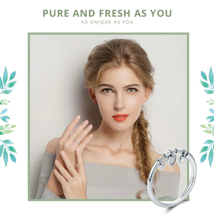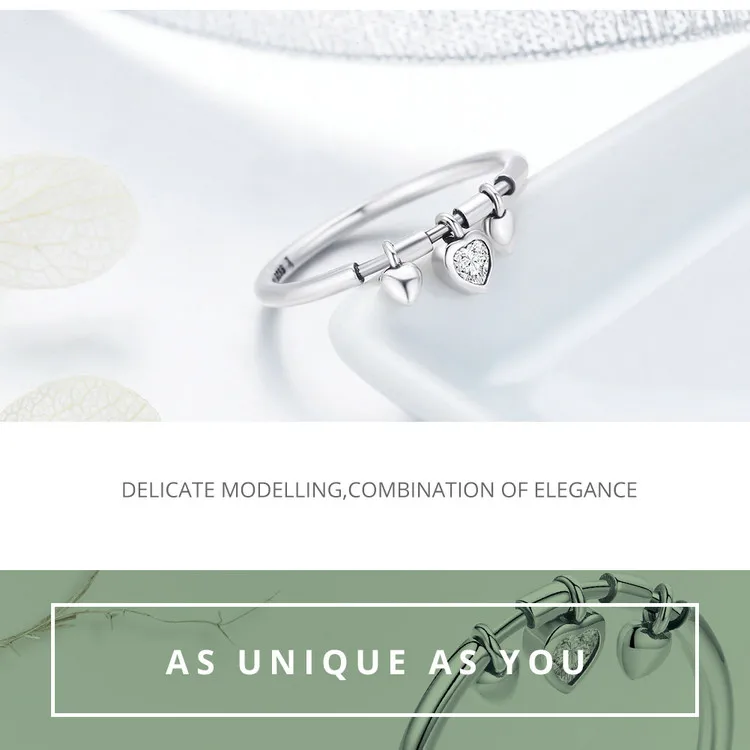 Bamoer 925 пробы, Серебряное блестящее сердце, прозрачный CZ, женское кольцо Ангела, изысканный циркон, пара, свадебные помолвки, ювелирные изделия SCR215