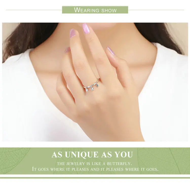 Bamoer регулируемое Открытое кольцо из стерлингового серебра 925 пр...