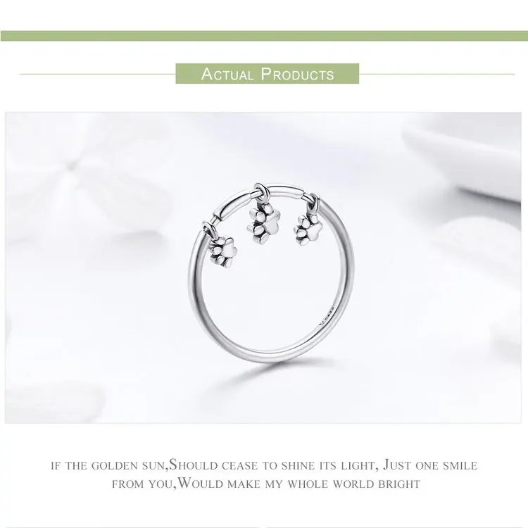 Кольцо женское из серебра 925 пробы с принтом следов собаки и кошки