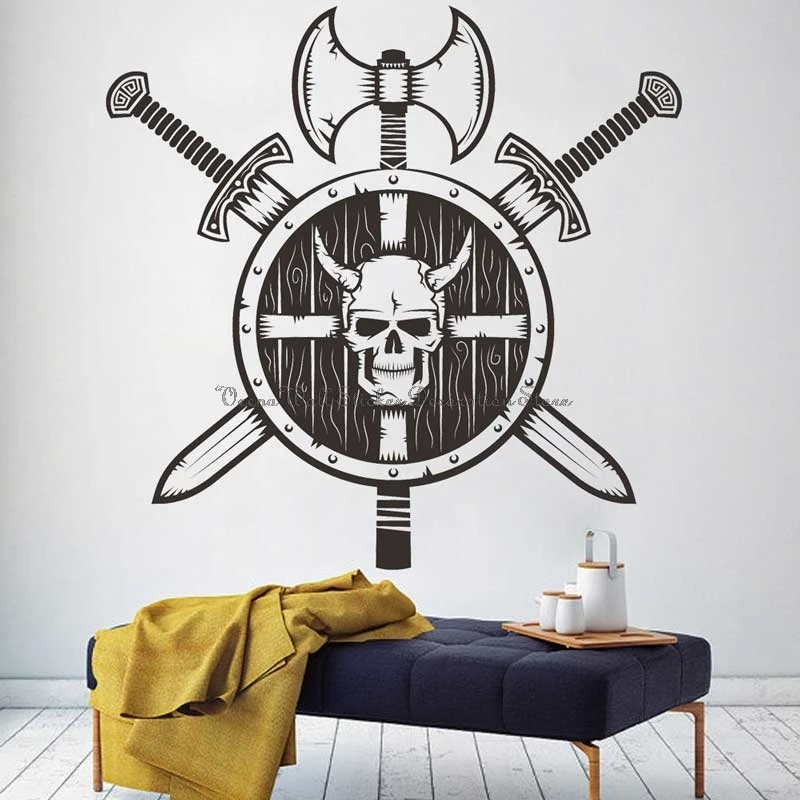 Виниловые наклейки на стену в стиле викингов, пиратское приключение, оружие воина, музей истории викингов, скандинавский декор для дверей и стекла, Подарочные наклейки, 10