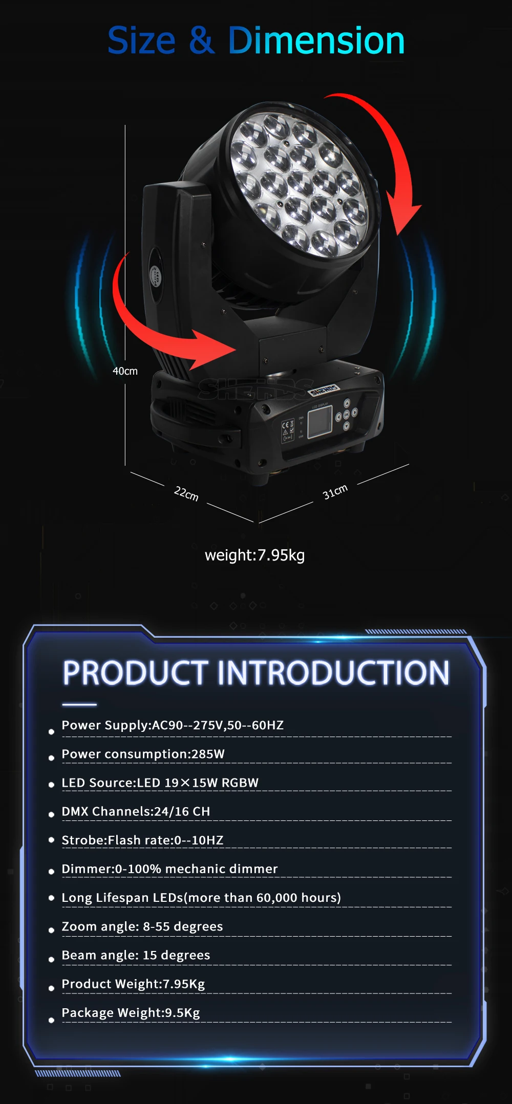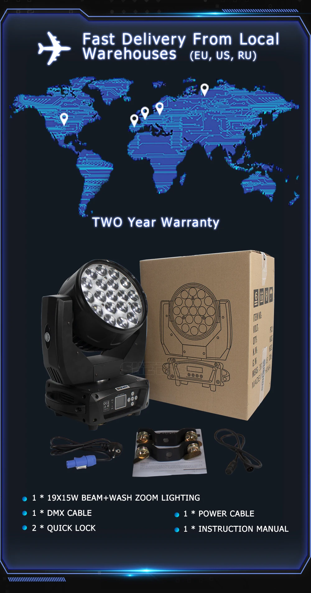 SHEHDS светодиодный луч + мыть 19x15 Вт RGBW с переменным фокусным расстоянием проектор для DJ диско вечерние шарика этапа концерта Быстрая доставка