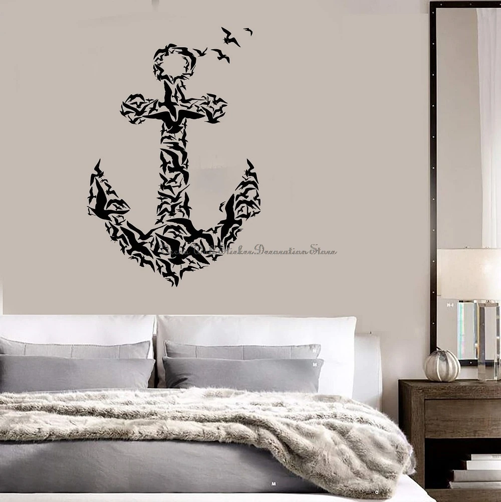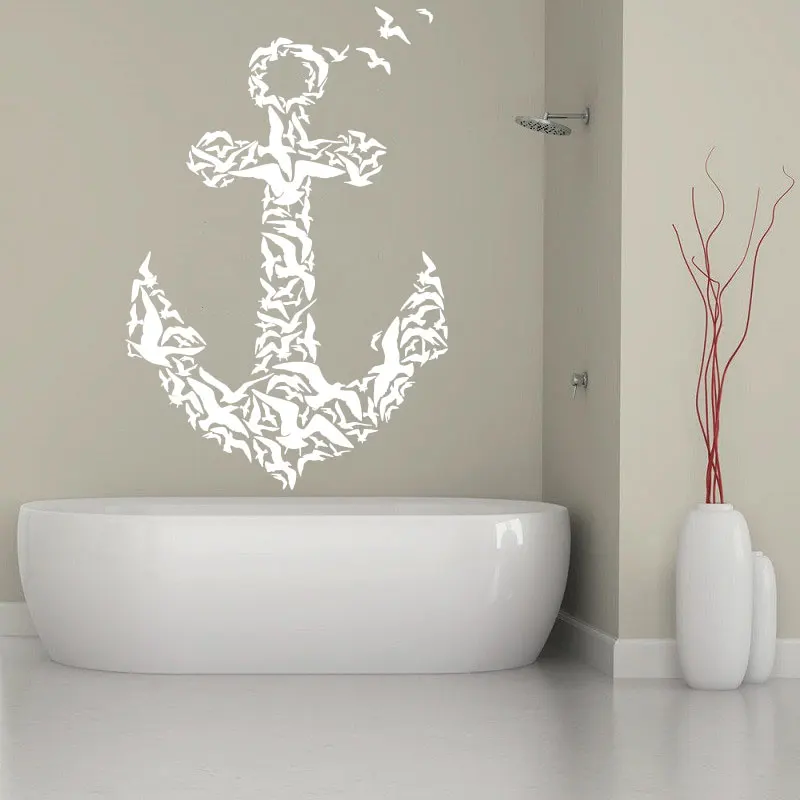 Виниловая настенная наклейка с якорем и птицей, настенная наклейка, украшение для дома, комнаты, спальни, ванной комнаты, Виниловая наклейка 17 дюймов
