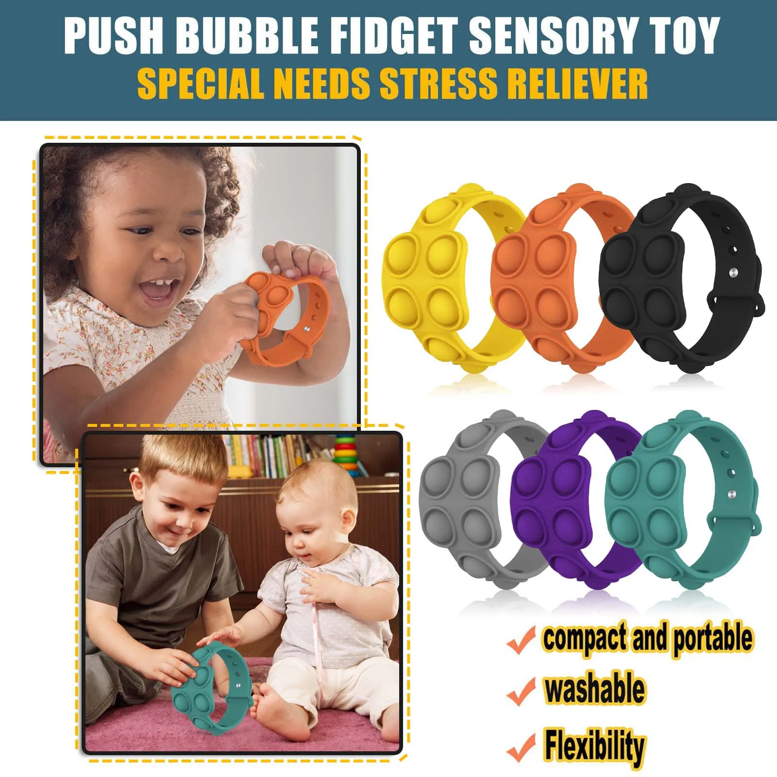 Отлично подходитДизайн для беспокойства: просто играйте, сжимайте, нажимайте игрушку figetget,Нажимайте пузырьки и выскакивайте звук. Хорошие домашние школьные принадлежности для аутизмаСДВГ специальные потребности детей. Отличные офисные игрушки для снятия стрессаВзрослые