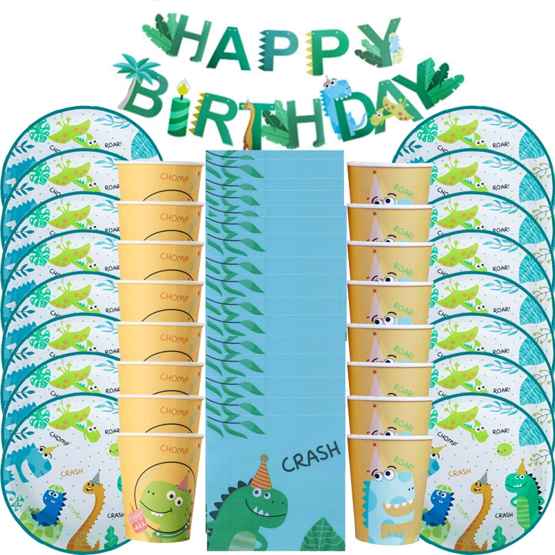Динозавр тема вечерние динозавр набор одноразовой посуды Воздушные шары День рождения детей, мальчика вечерние украшения джунгли вечерние детей Ванна пользу